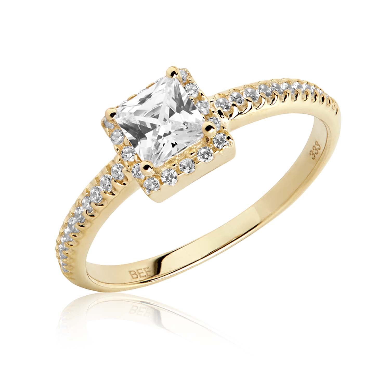 Aveny COLLECTION - Ring m. stor fikantet center sten og langs skinnen - 8 kt. guld