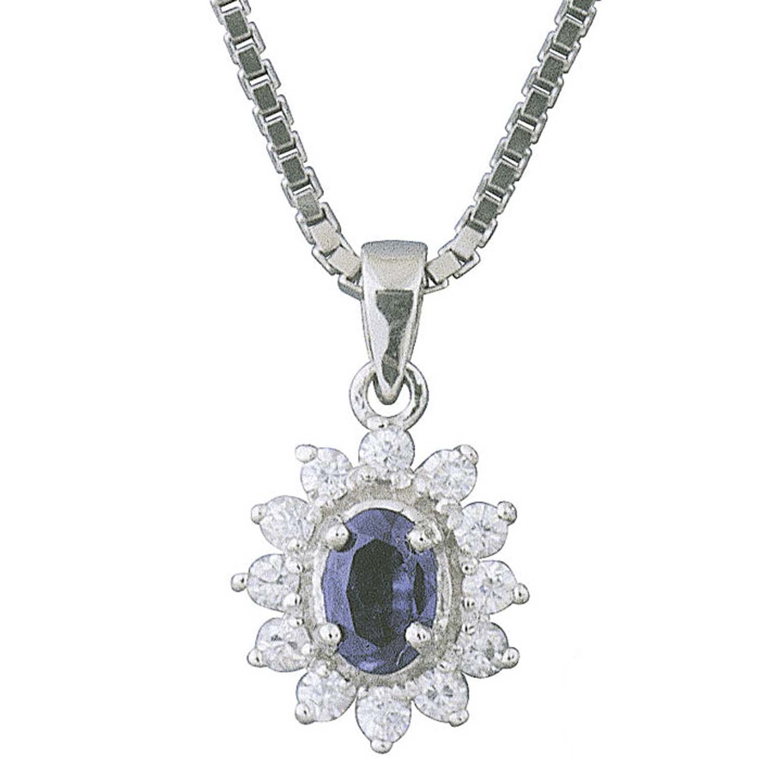 Aveny COLLECTION - Roset vedhæng m. safir og zirkonia - 8 kt. hvidguld