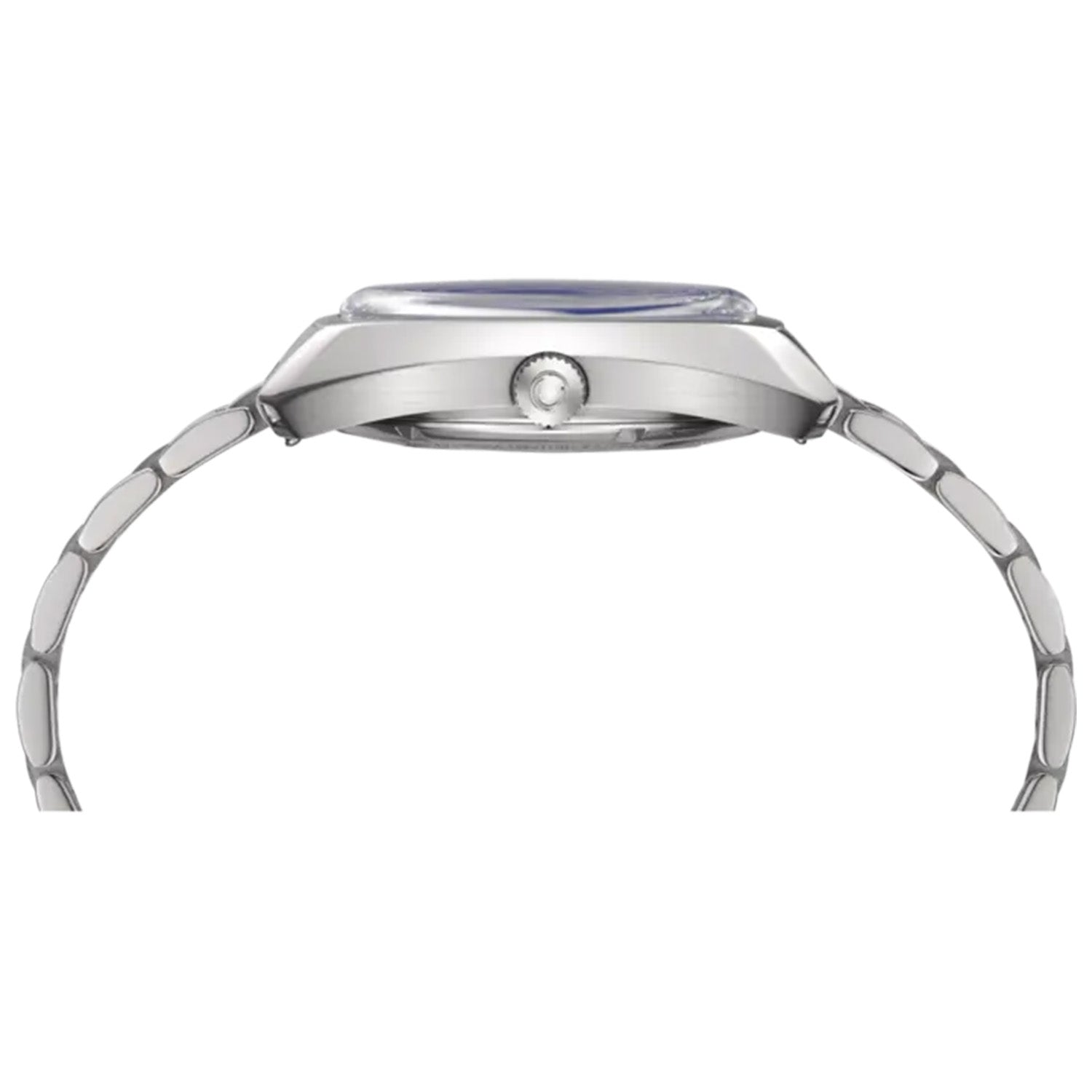 Urets design er en fryd for øjet. Den dybe blå urskive skaber en smuk kontrast til det polerede stål, hvilket giver et sofistikeret udtryk. De skarpe linjer og den robuste konstruktion sikrer, at uret føles solidt og komfortabelt på håndleddet. Den integrerede stållænke tilføjer en ekstra dimension af luksus og holdbarhed.