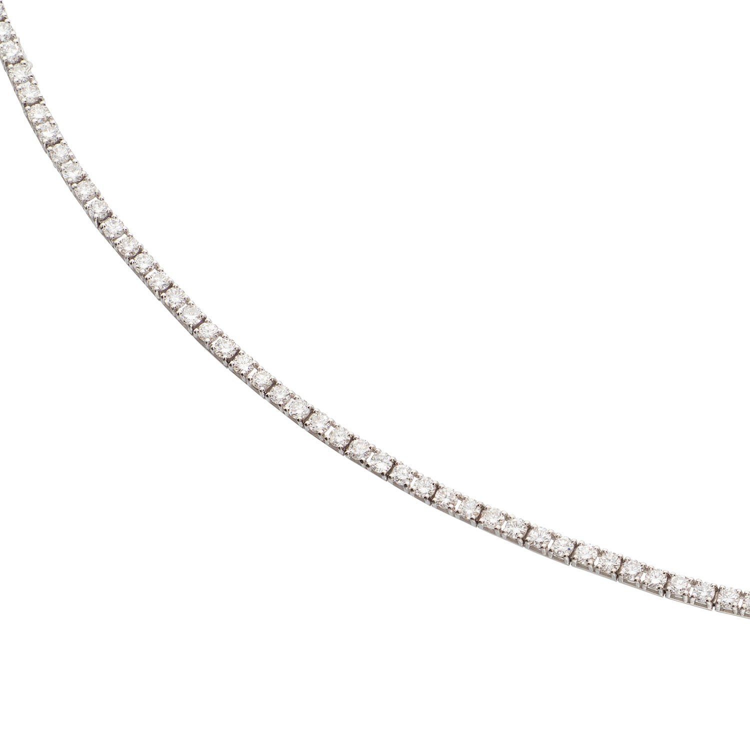 Armbåndet er en fryd for øjet med sine strålende diamanter, der glimter ved hver bevægelse. Den slanke og elegante kæde i hvidguld fremhæver de funklende sten og skaber et sofistikeret look. Det minimalistiske design gør det nemt at kombinere med andre smykker, mens det stadig står stærkt alene.