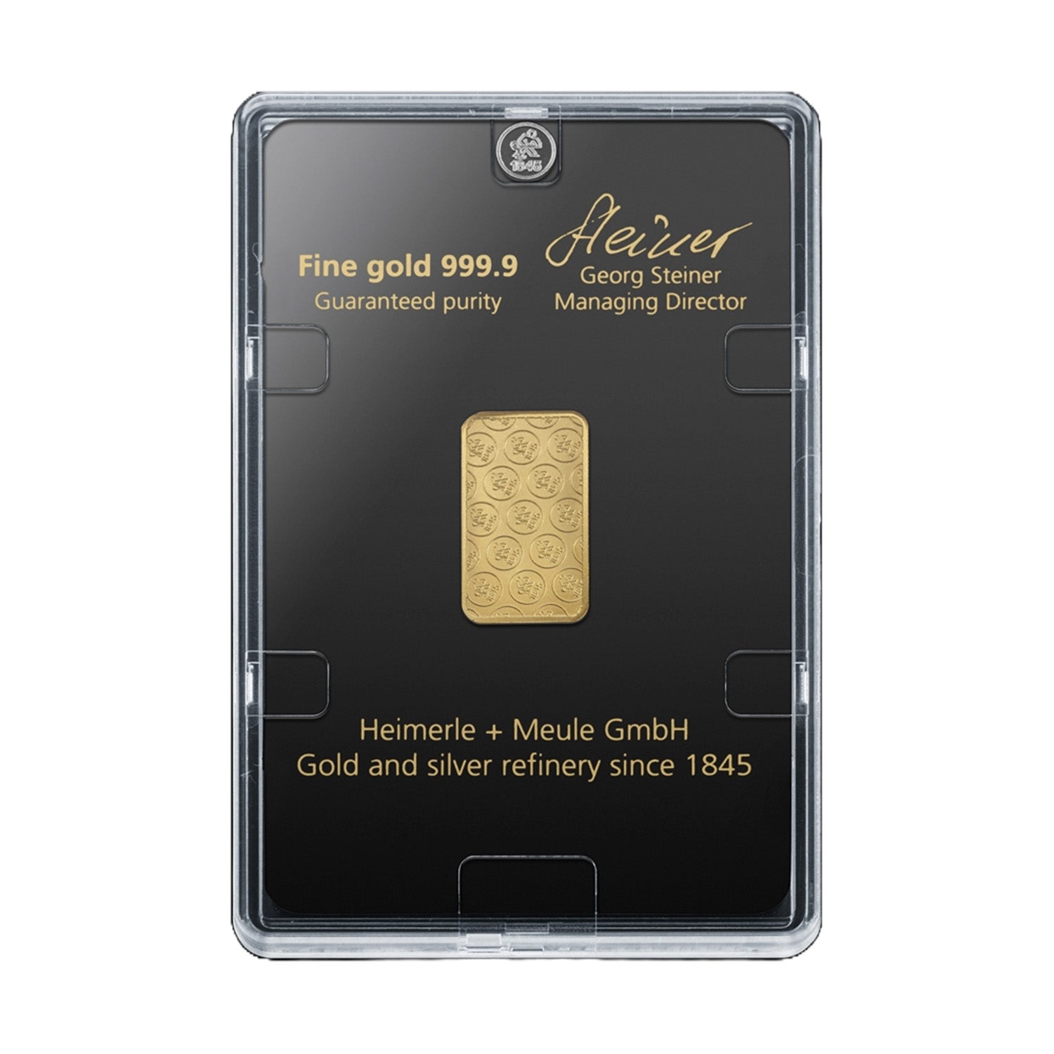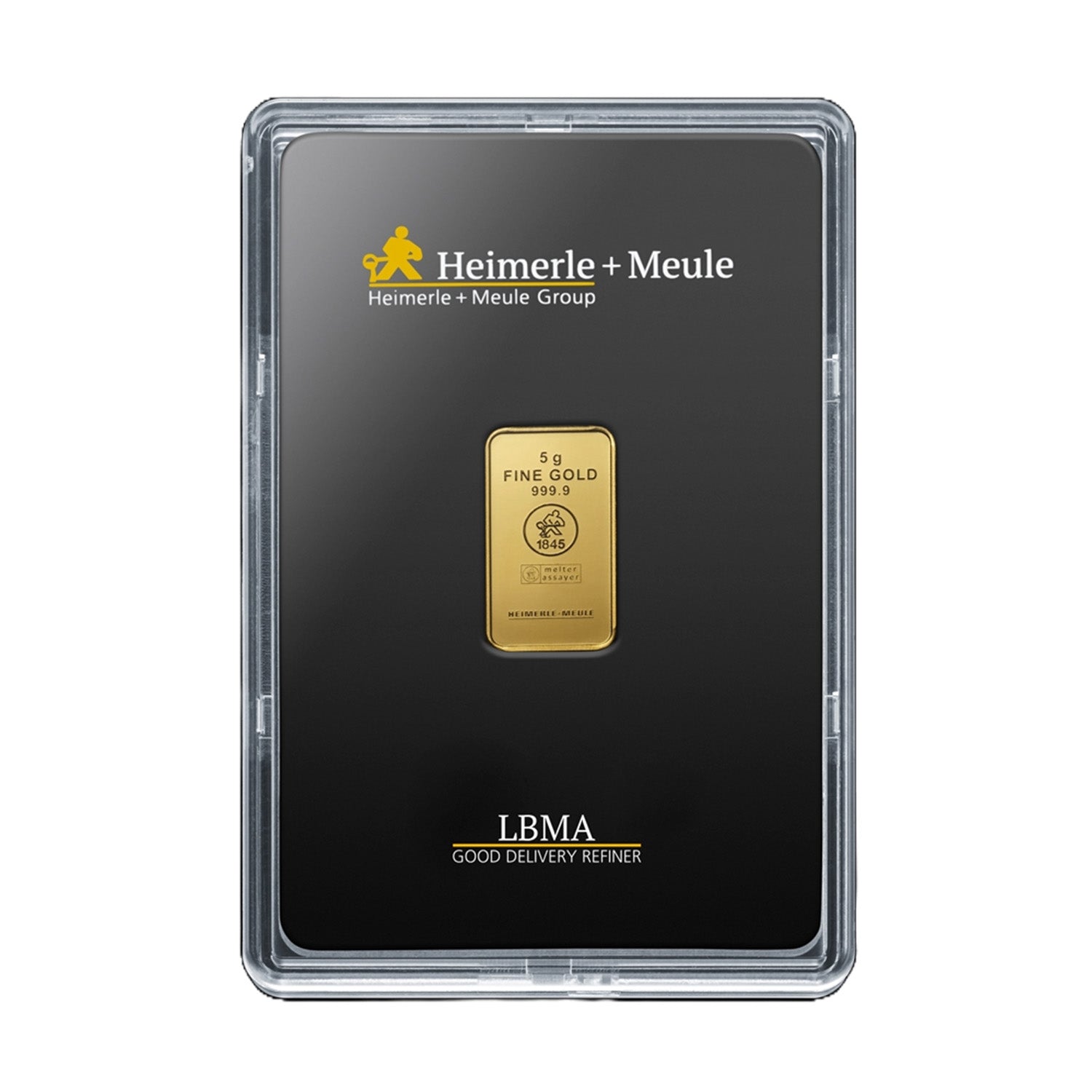Denne 5 grams guldbarre er et godt valg, hvis du vil have en kompakt og praktisk måde at investere i finguld på. Den er produceret af Heimerle + Meule – Tysklands ældste guldraffinaderi – og består af 24 karat guld med en renhed på 99,99 %.