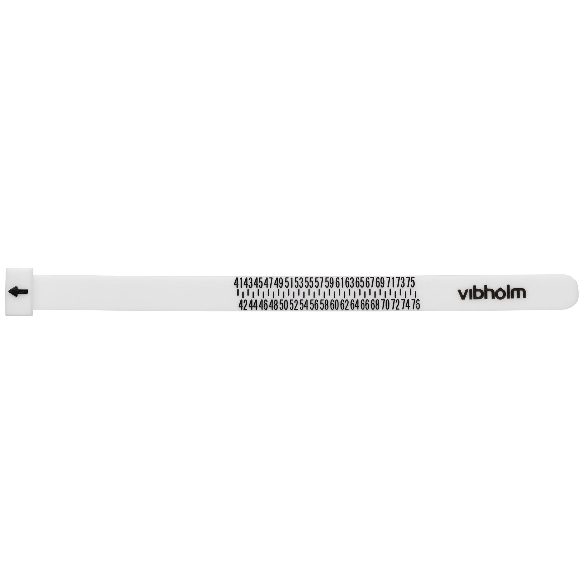 Ringmåleren er lavet af et holdbart materiale, der sikrer langvarig brug. Den har en klar og letlæselig skala, der gør det nemt at aflæse størrelsen. Den hvide farve giver et rent og professionelt udseende, mens den sorte skrift sikrer tydelig synlighed. Med en glat overflade føles den behagelig mod huden, og den fleksible konstruktion gør det nemt at justere til den ønskede størrelse.