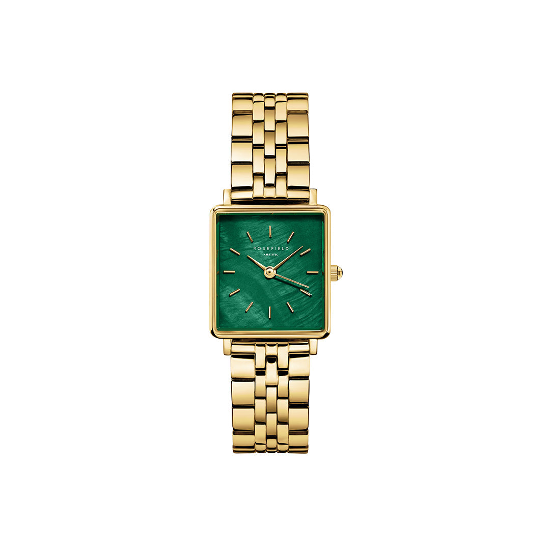 Uret har en smuk grøn urskive, der tilføjer et strejf af farve og personlighed. Den forgyldte lænke i rustfrit stål giver en luksuriøs følelse, mens den firkantede urskive tilføjer et moderne twist. Med en størrelse på 22x24 mm er det perfekt til dem, der foretrækker et mindre, diskret ur.