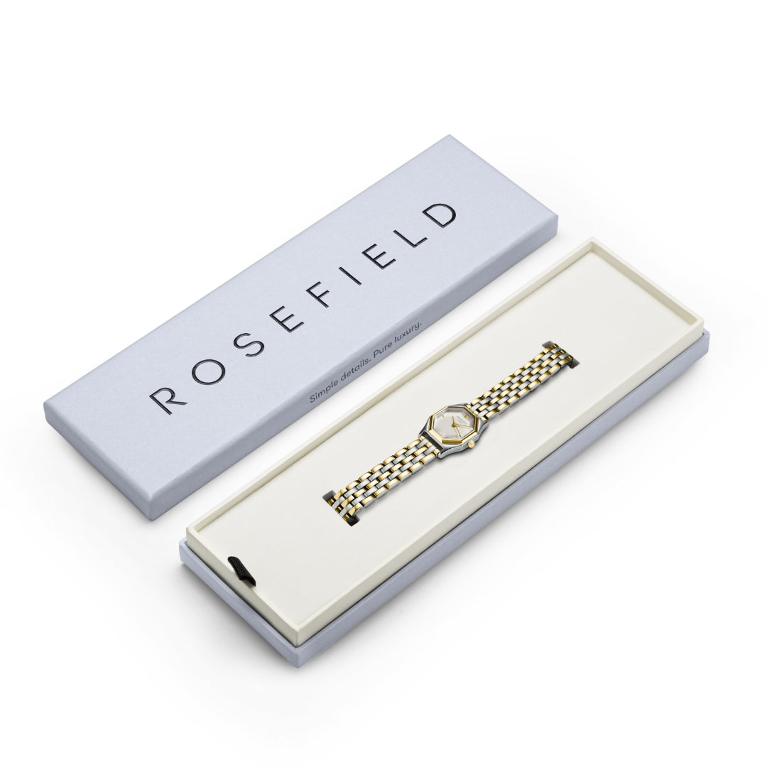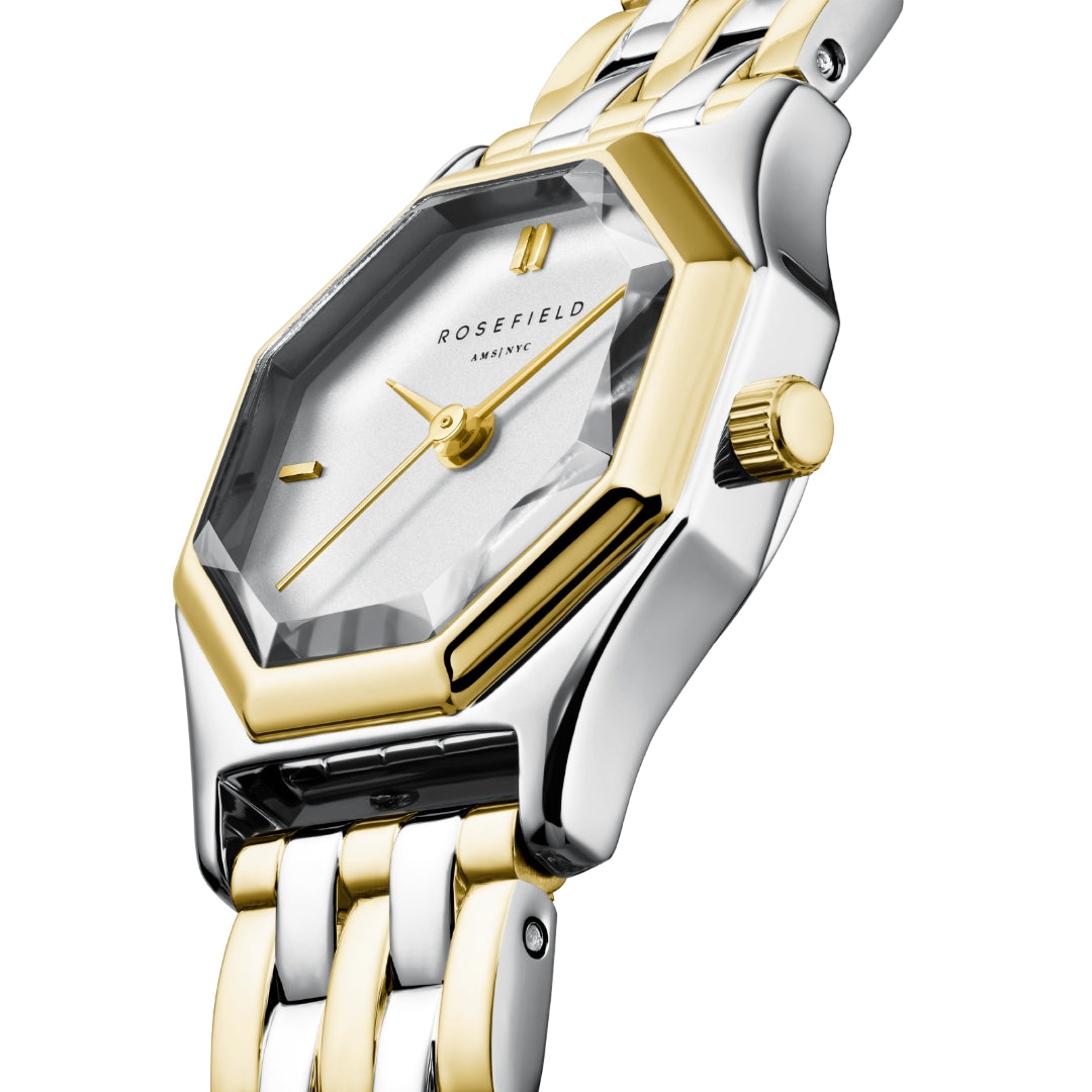 Rosefield's The Gemme Gold & Silver ur er ikke bare et tilbehør, men en erklæring om stil og kvalitet. Lad dette ur blive en del af din daglige stil og oplev, hvordan det tilføjer et strejf af luksus til dit look.