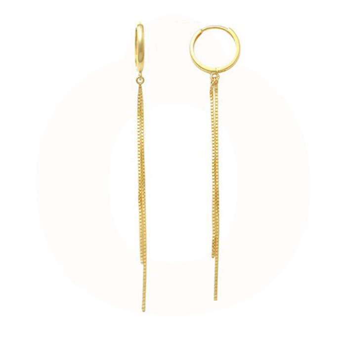 Disse creoler er udført i en smuk guldfarve, der fanger lyset på en subtil og elegant måde. De lange, slanke kæder tilføjer en dynamisk bevægelse, der skaber en iøjnefaldende effekt, når du bevæger dig. Den glatte overflade og den fine tekstur giver en luksuriøs følelse, der komplementerer ethvert outfit.