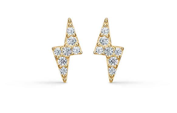 Øreringene har en iøjnefaldende lynform, der er prydet med funklende sten, hvilket giver et moderne og stilfuldt udtryk. Den gyldne farve skaber en varm glød, der komplementerer enhver hudtone. De små detaljer og den glatte overflade sikrer, at øreringene både ser fantastiske ud og føles behagelige at have på.