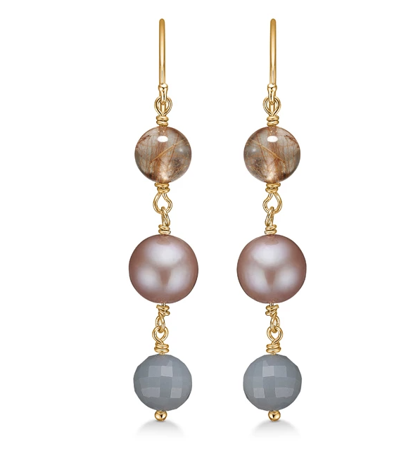 Øreringene er udført i en smuk kombination af gyldne nuancer og delikate detaljer. De har en unik sammensætning af perler og sten, der skaber et sofistikeret udtryk. Den gyldne farve giver et varmt og indbydende look, mens de forskellige teksturer tilføjer dybde og karakter.