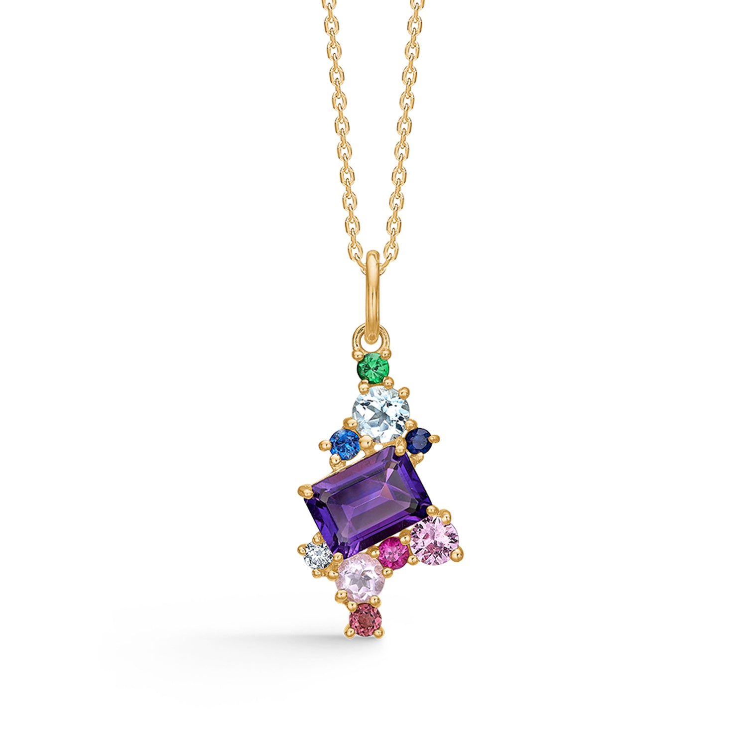 Vedhænget præsenterer en harmonisk blanding af farver og former, der minder om en sommerdag. Den gyldne nuance af 14 kt. guld skaber en varm og indbydende glød, mens de indlagte sten tilføjer et strejf af farve og liv. Designet er både moderne og klassisk, hvilket gør det til et ideelt valg for dem, der ønsker at udtrykke deres personlige stil.
