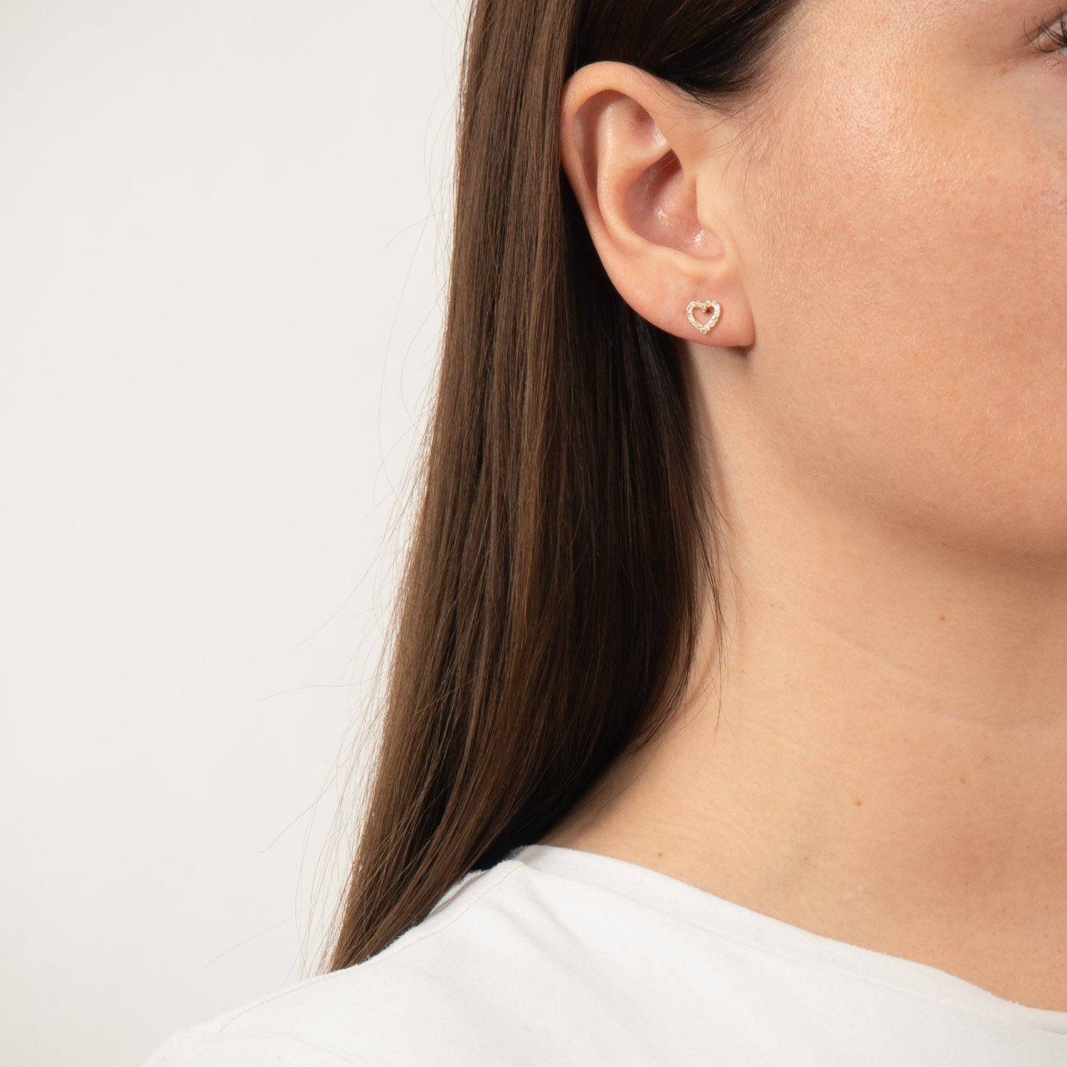 Aveny NINE K - Ørestikker med hjerte og zirkonia i 9 kt. guld