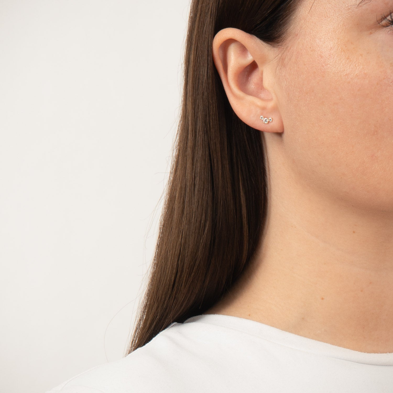 De tre zirkonia-sten er omhyggeligt placeret for at skabe en harmonisk og strålende effekt. Den gyldne nuance af 9 karat guld giver en varm og indbydende glød, der komplementerer enhver hudtone. Ørestikkernes polerede overflade reflekterer lyset og fremhæver stenens glans, hvilket gør dem til et iøjnefaldende tilbehør.
