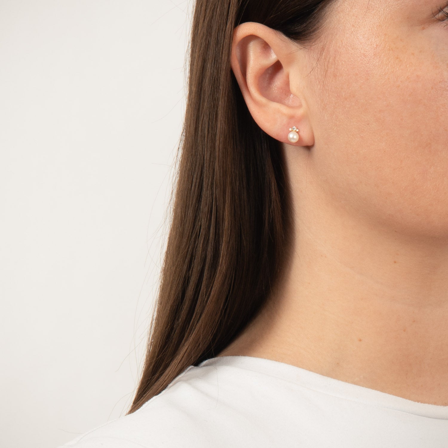 Ørestikkernes design er en harmonisk blanding af det klassiske og det moderne. Den glatte overflade af det gyldne metal fremhæver de klare zirkonia-sten, der fanger lyset og skaber en subtil glans. Den delikate ferskvandsperle tilføjer en blød, naturlig skønhed, der komplementerer det skinnende guld. Sammen skaber disse elementer et tidløst smykke, der kan bæres alene eller sammen med andre favoritter.
