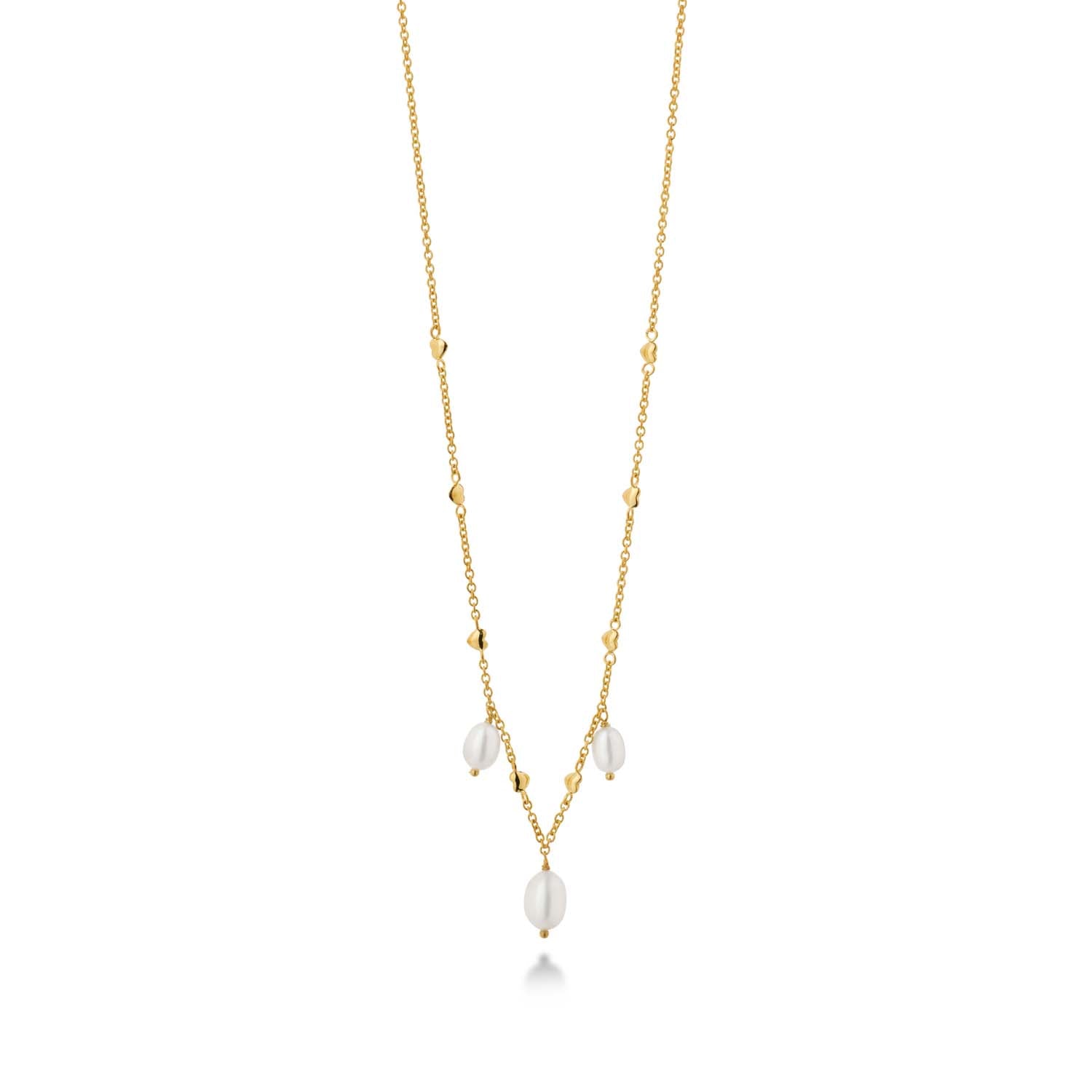 Aveny COLLECTION - Halskæde m. 3 ferskvperler, 40-45 cm - Forgyldt sølv