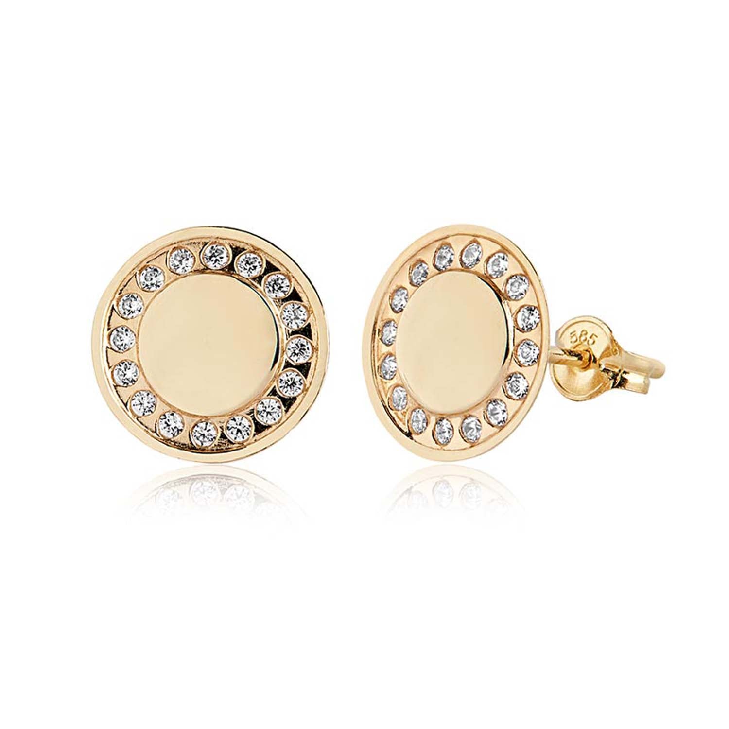 Aveny COLLECTION - Ørestikker m. plade, 9,5 mm/zirkonia - 14 kt. guld