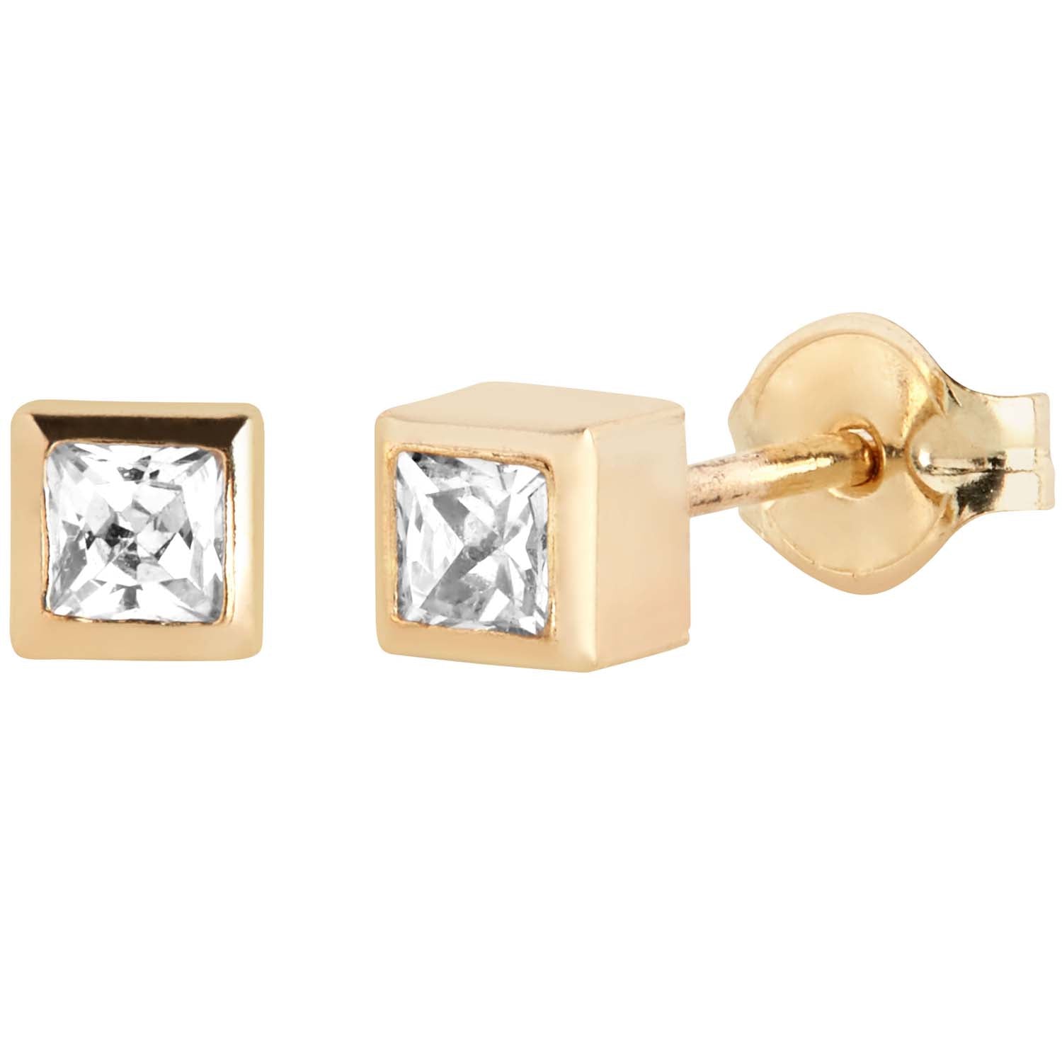 Aveny COLLECTION - Ørestikkerm. firkantet rørfatning, 3 mm/zirkonia - 14 kt. guld