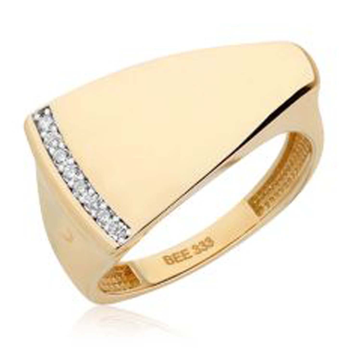 Aveny COLLECTION - Ring med plade, zirkonia - 8 kt. guld