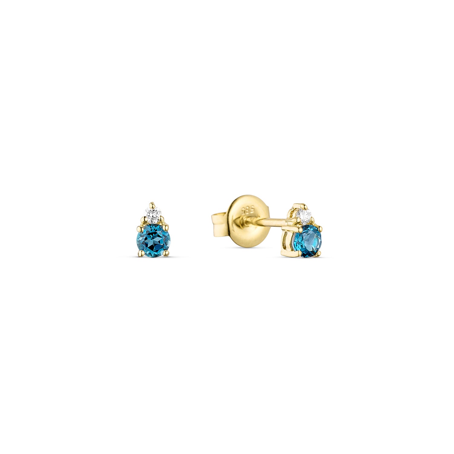 Aveny LUXURY - Ørestikker m. London Blue topas, 0,03 ct. w/si - 14 kt. guld