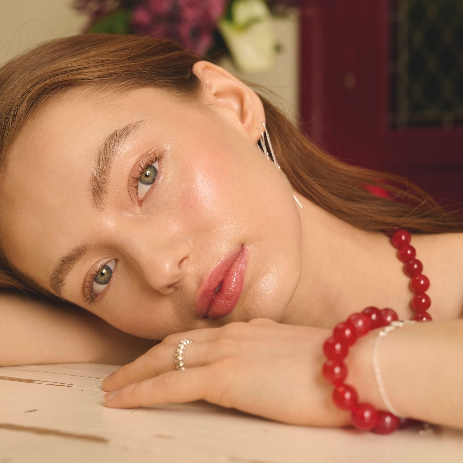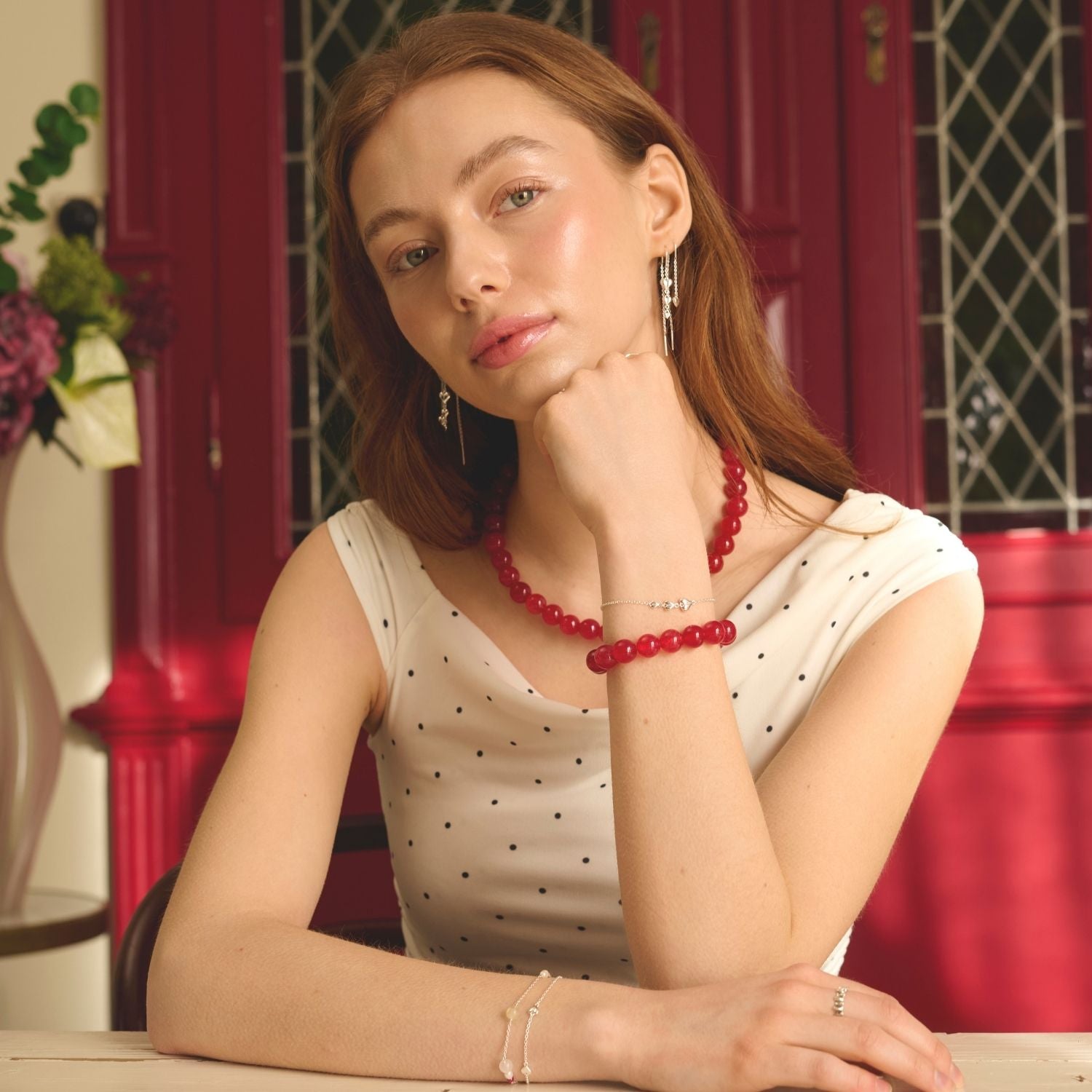 LuvaLu Jewellery - Celeste Red halskæde, 12 mm/42+3 cm - Sølv