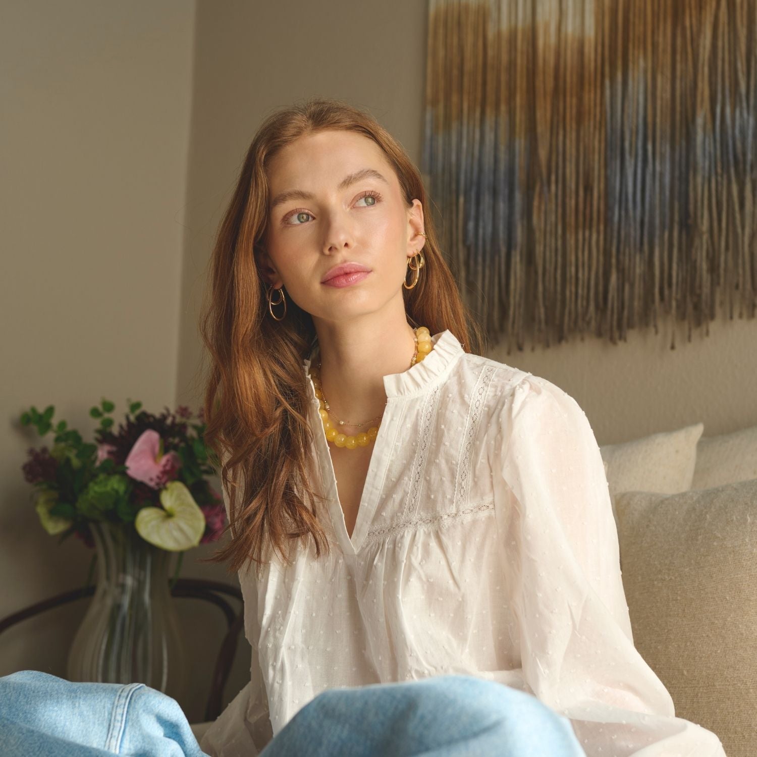 LuvaLu Jewellery - Celeste Yellow halskæde, 14 mm/42+3 cm - Sølv