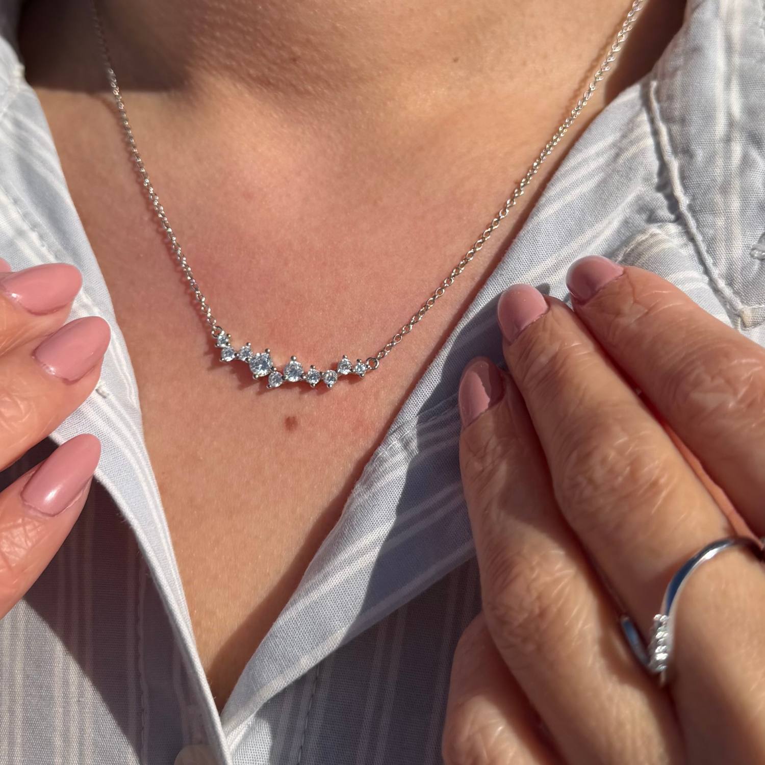 View Jewellery - Nasima halskæde m. zirkonia, 42+3 cm - Rhodineret sølv