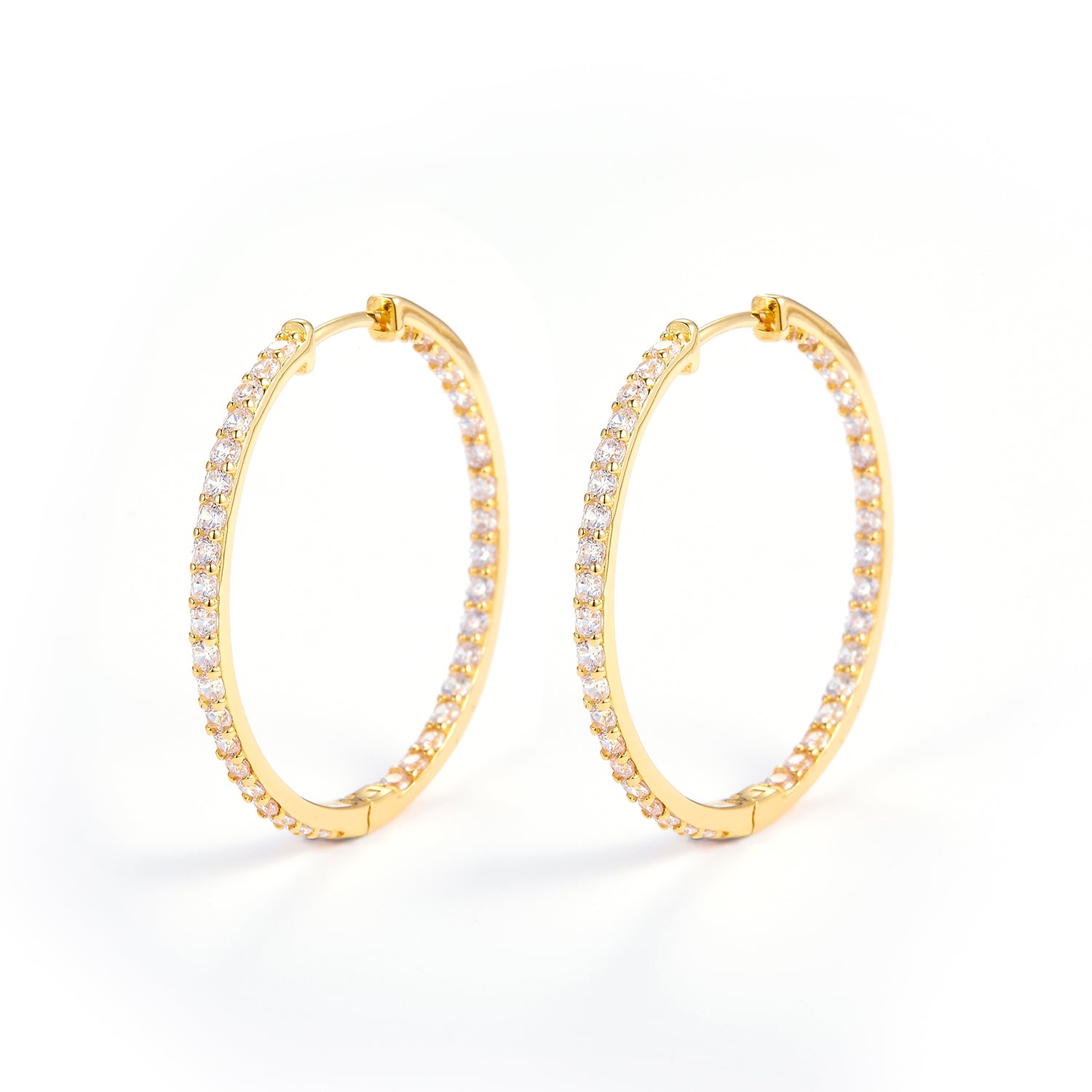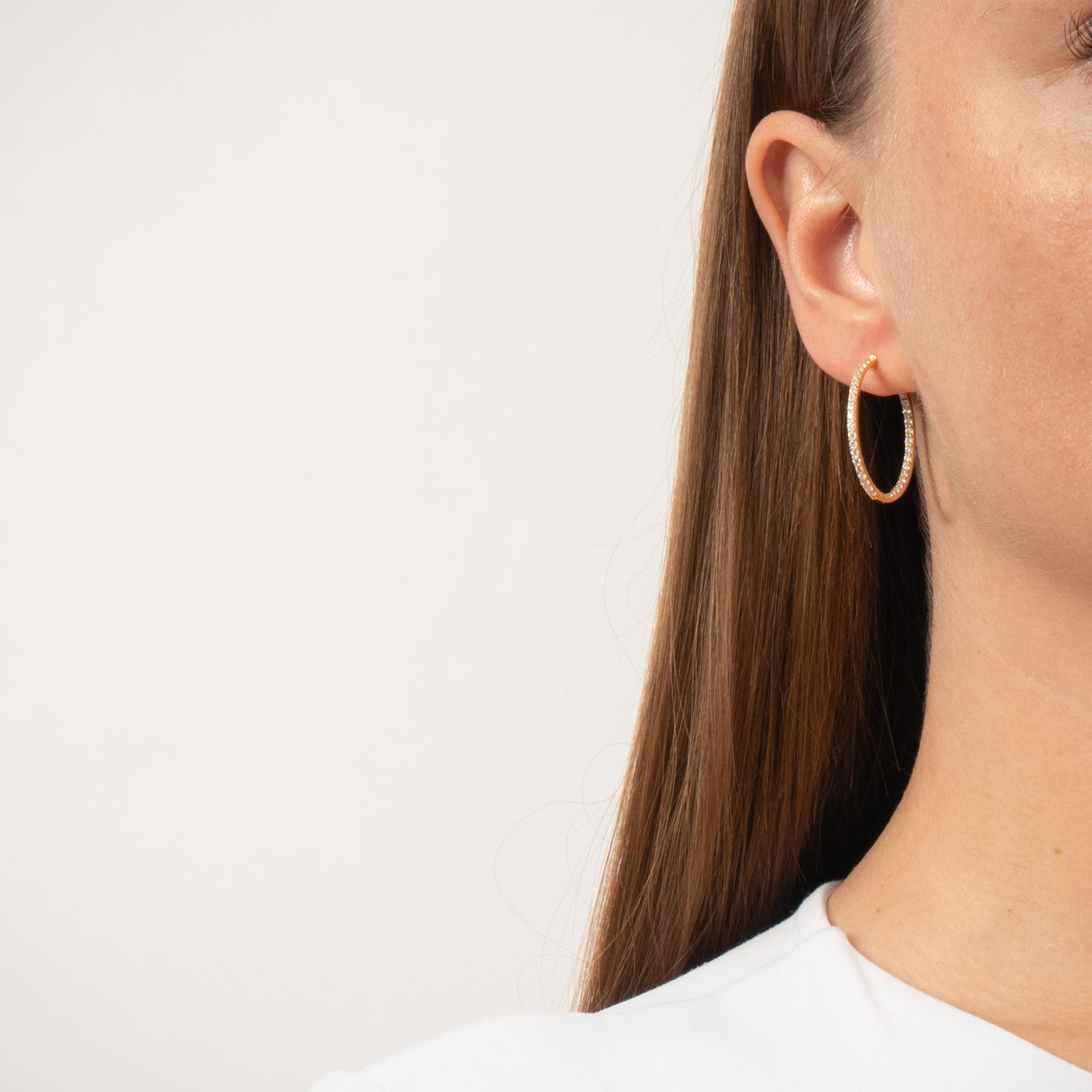 View Jewellery - Thalia Grande creoler m. zirkoner, 30 mm - Forgyldt sølv