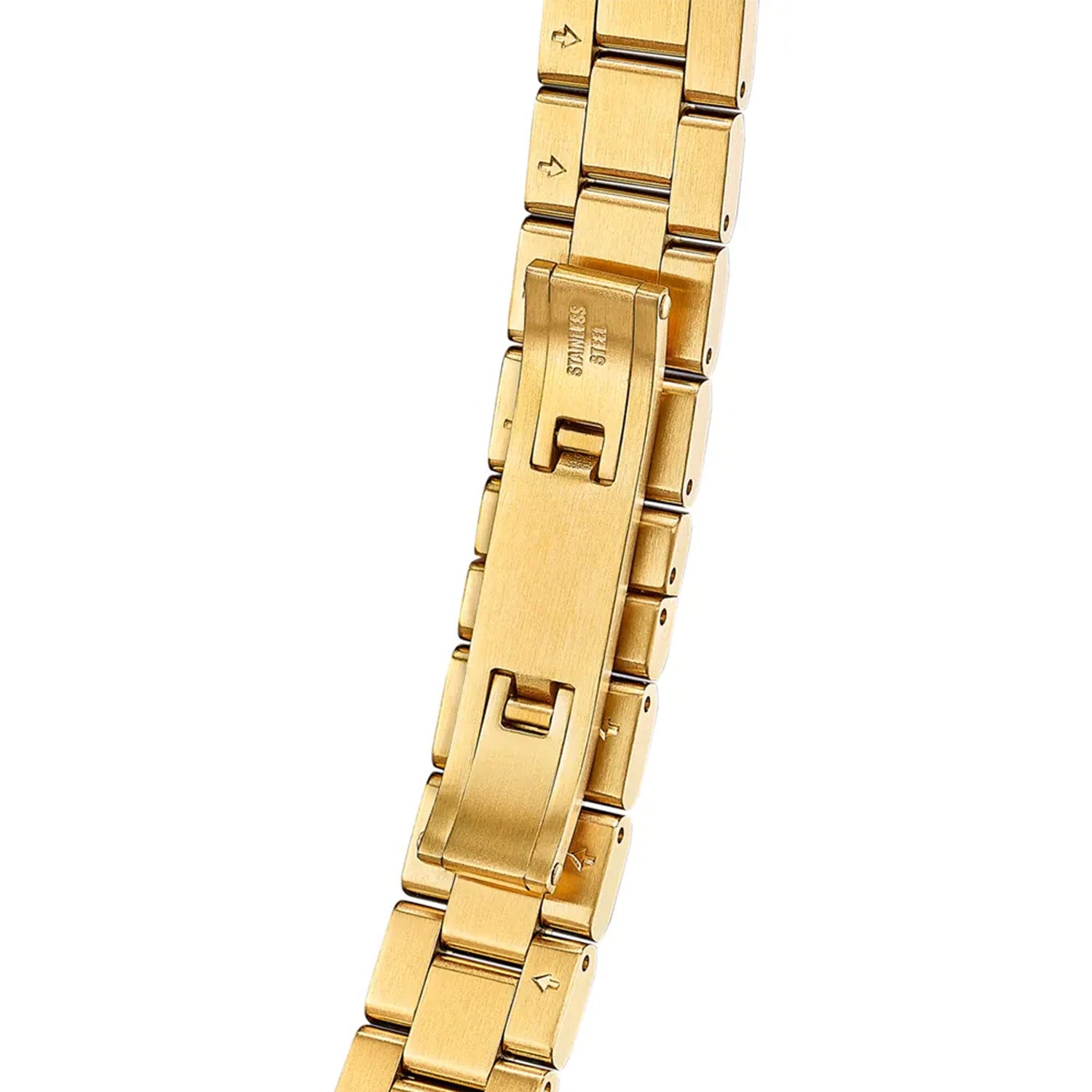 Urets design er en fryd for øjet. Den gyldne farve skinner med en varm glød, der fanger lyset smukt. Den perlemorsagtige urskive tilføjer en subtil elegance, mens de klare markeringer gør det nemt at aflæse tiden. Den polerede lænke føles behagelig mod huden og sikrer en perfekt pasform.