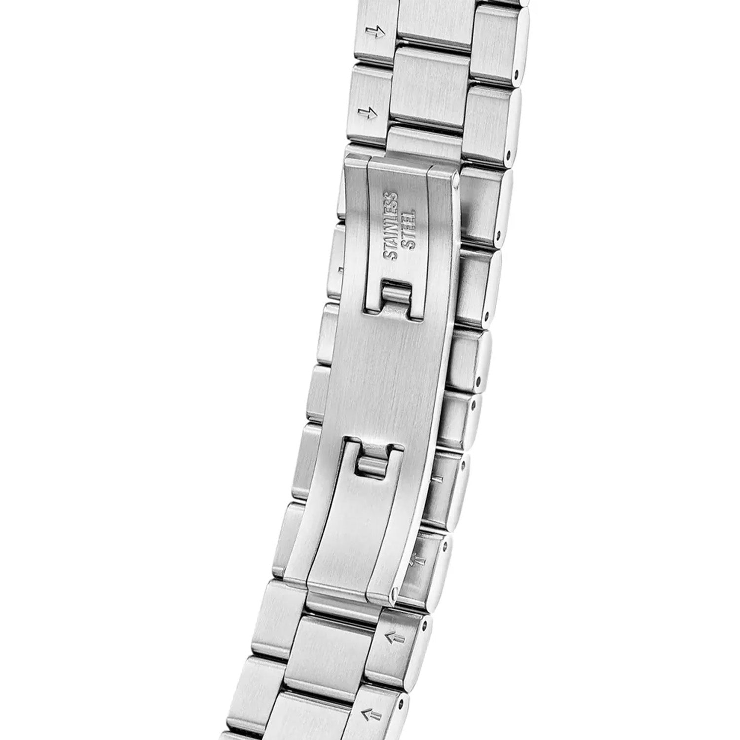 Designet i rustfrit stål, udstråler uret en luksuriøs følelse. Den grønne urskive skaber en iøjnefaldende kontrast til den sølvfarvede lænke, hvilket gør det til et statement-piece. De slanke visere og markører tilføjer et moderne touch, mens den robuste konstruktion sikrer langvarig holdbarhed.