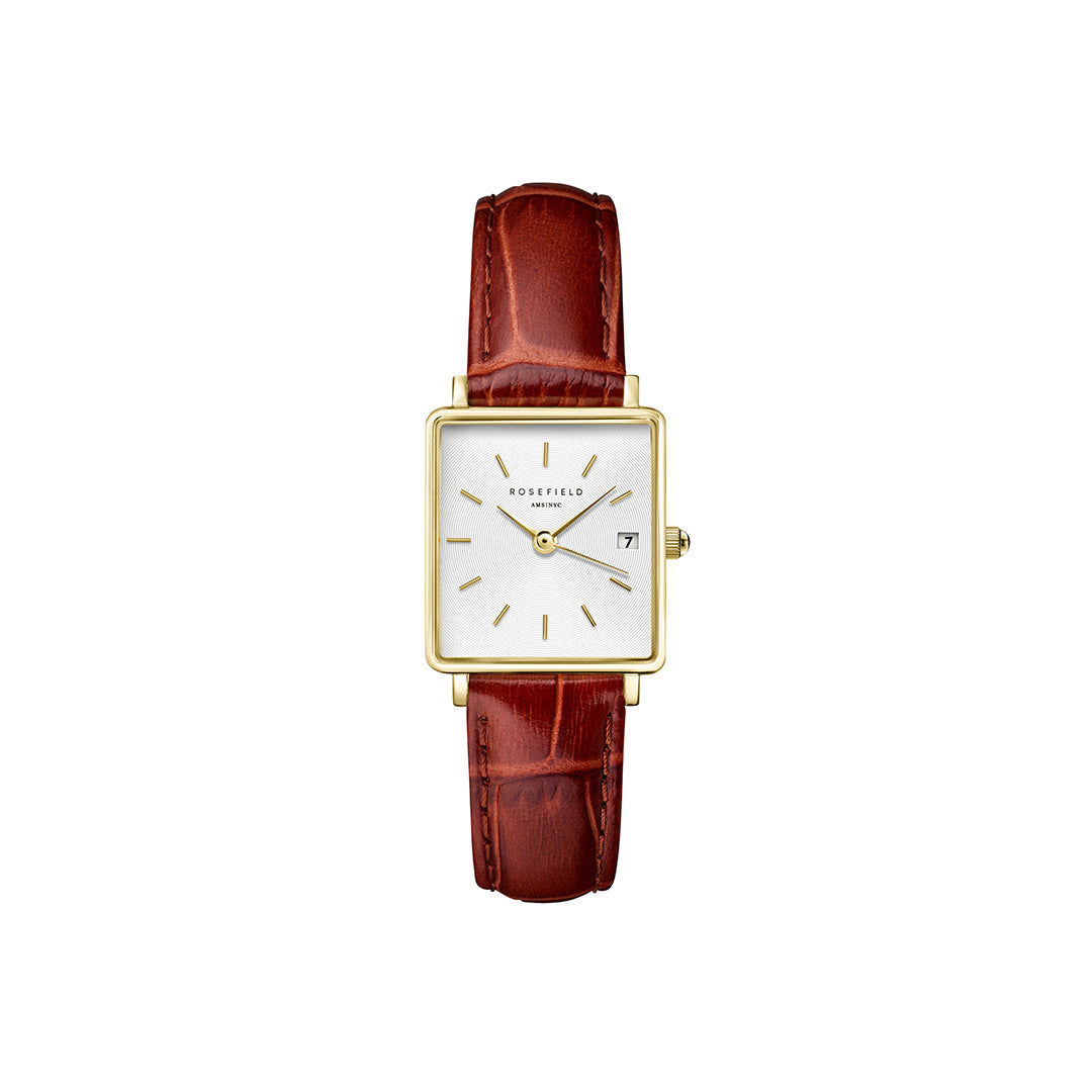 Rosefield - The Boxy XS Brown Croco med rem, 22x24 mm - Hvid, rustfrit stål
