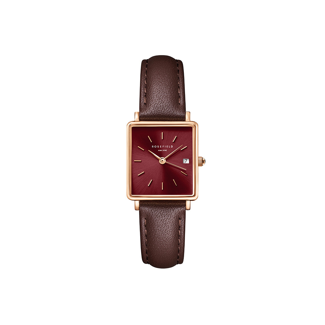 Rosefield - The Boxy XS Brown med rem, 22x24 mm - Rød, rustfrit stål