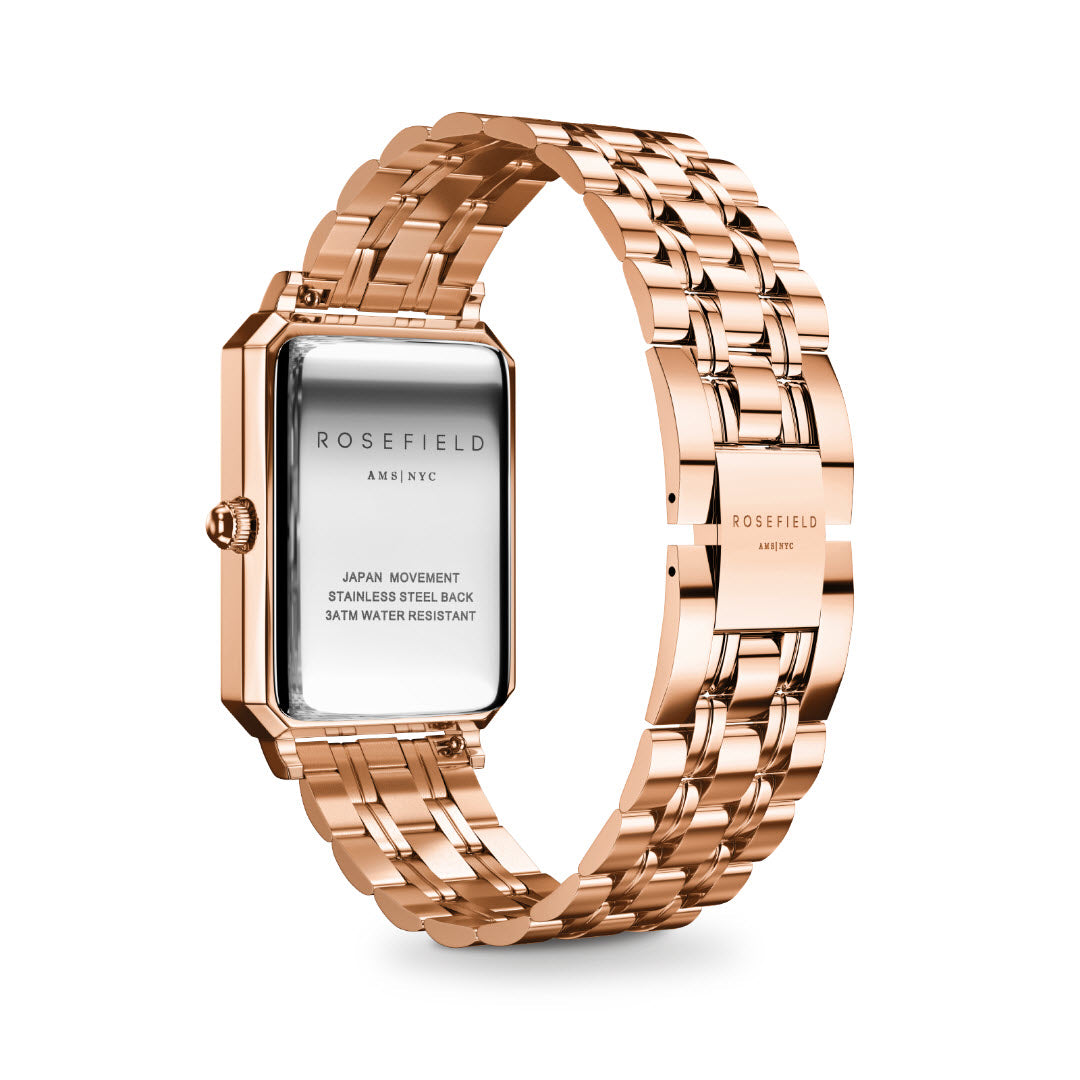 Oplev tidløs elegance med Rosefield's The Octagon Rosegold ur. Dette ur kombinerer moderne design med klassisk charme, perfekt til enhver lejlighed.