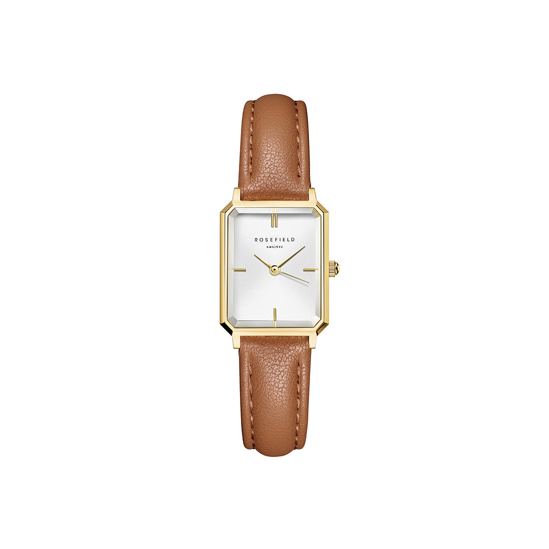 Rosefield - The Octagon XS Brown med rem, 19,5x24 mm - Hvid, rustfrit stål