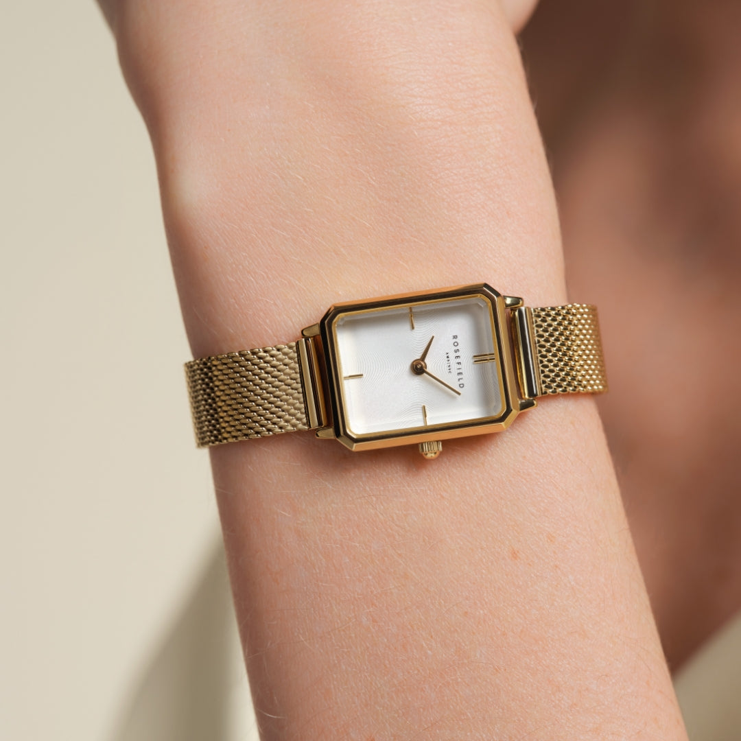 Oplev tidløs elegance med Rosefield's The Octagon XS Gold ur. Dette ur kombinerer moderne design med klassisk stil, hvilket gør det til det perfekte tilbehør til enhver lejlighed.