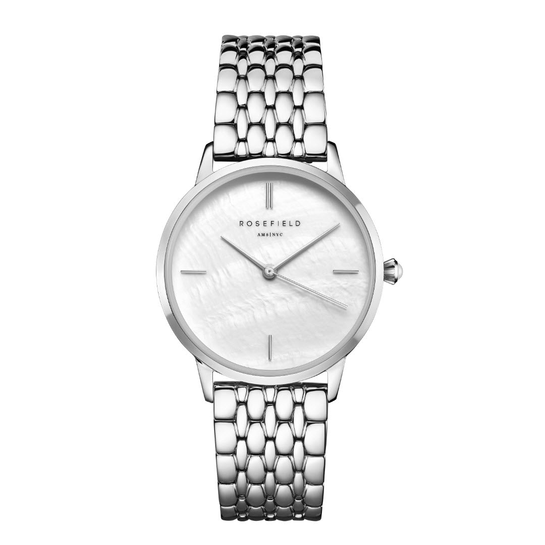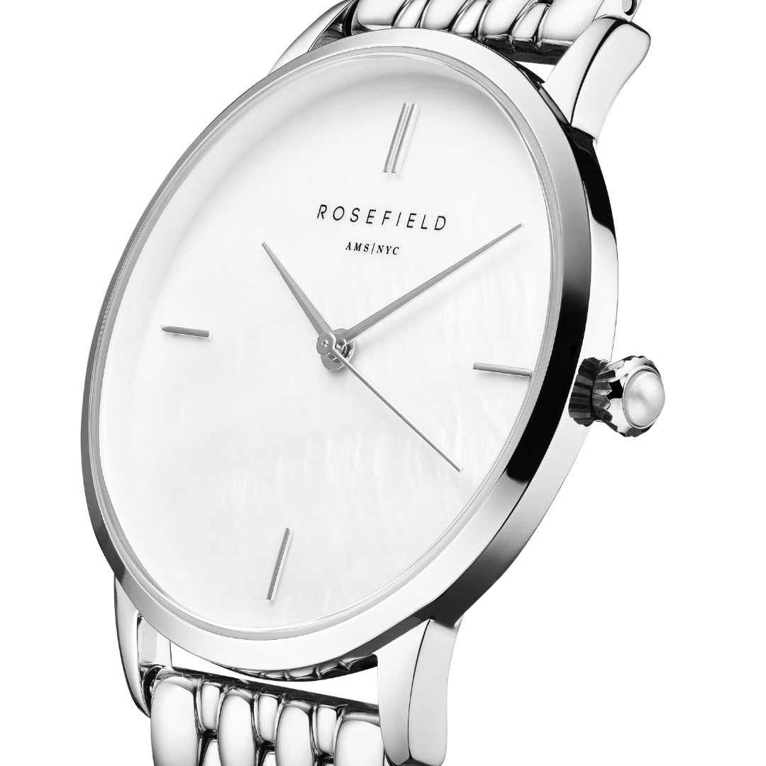 Rosefield's The Pearl Edit Silver ur er ikke bare et ur, men en erklæring om stil og kvalitet. Lad det blive en del af din personlige stil og oplev, hvordan det løfter dit look til nye højder.