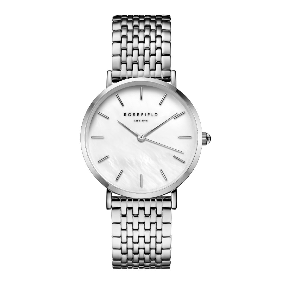 Rosefield - The Upper East Side Silver m. lænke, 33 mm - Hvid, rustfrit stål