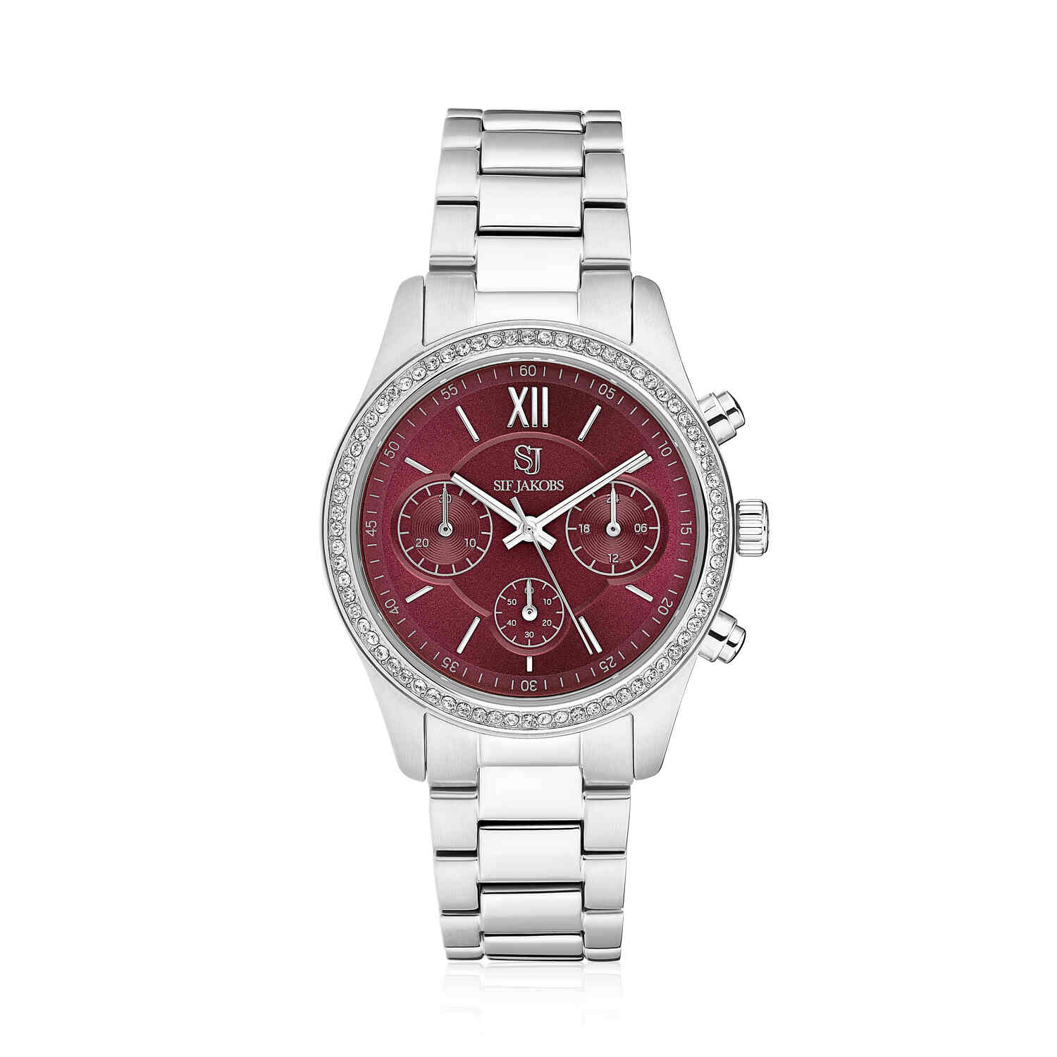 Sif Jakobs - Domenica ur med bordeaux skive, 32,5 mm - Stål