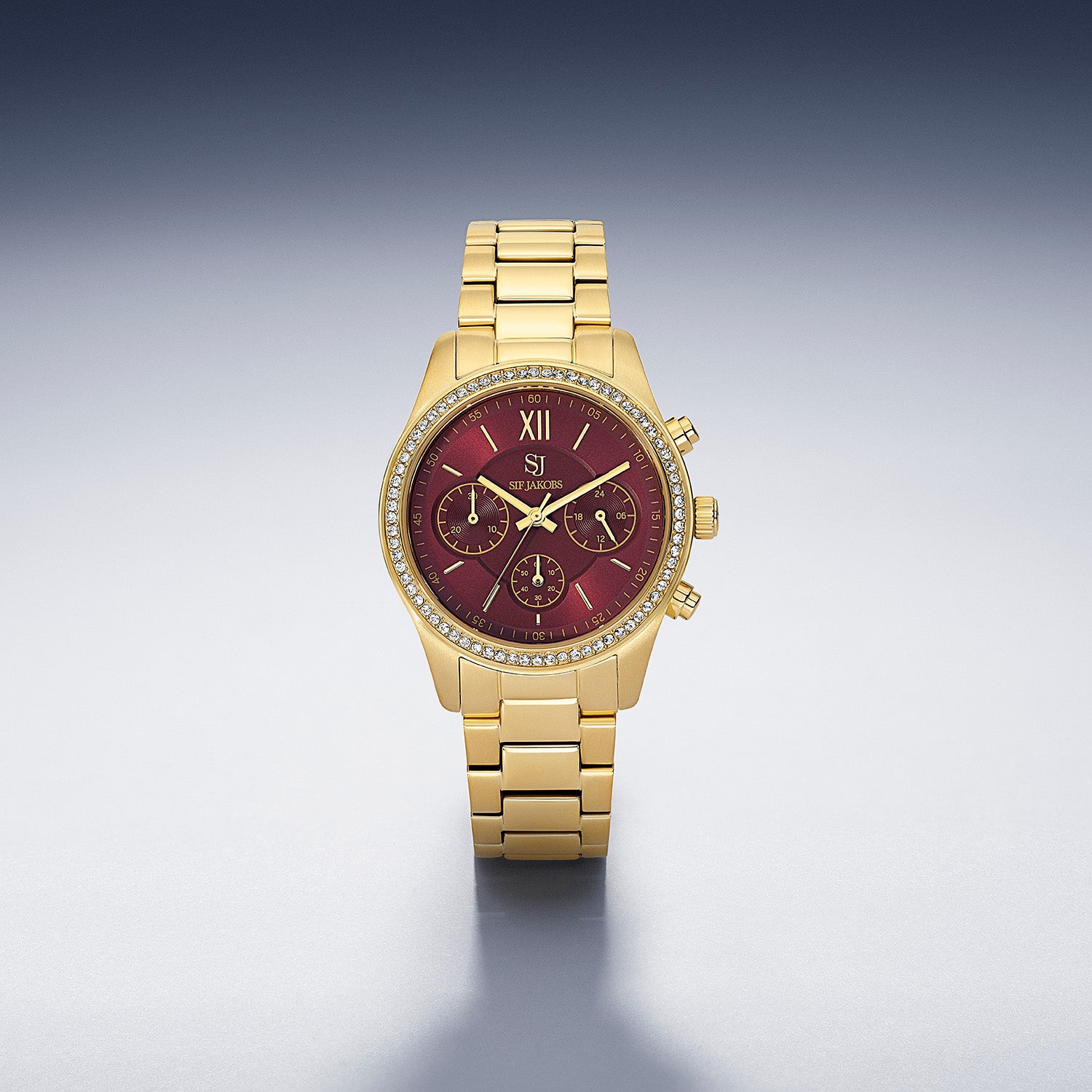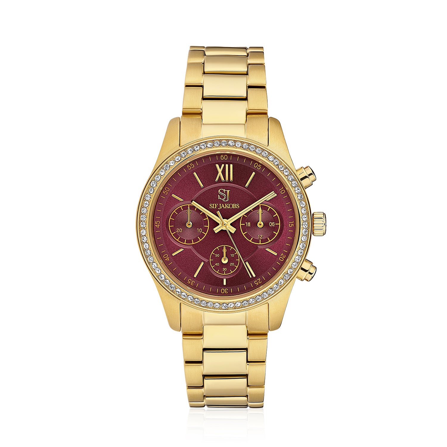 Sif Jakobs - Domenica ur m. bordeaux skive, zirkonia - Guld PVD
