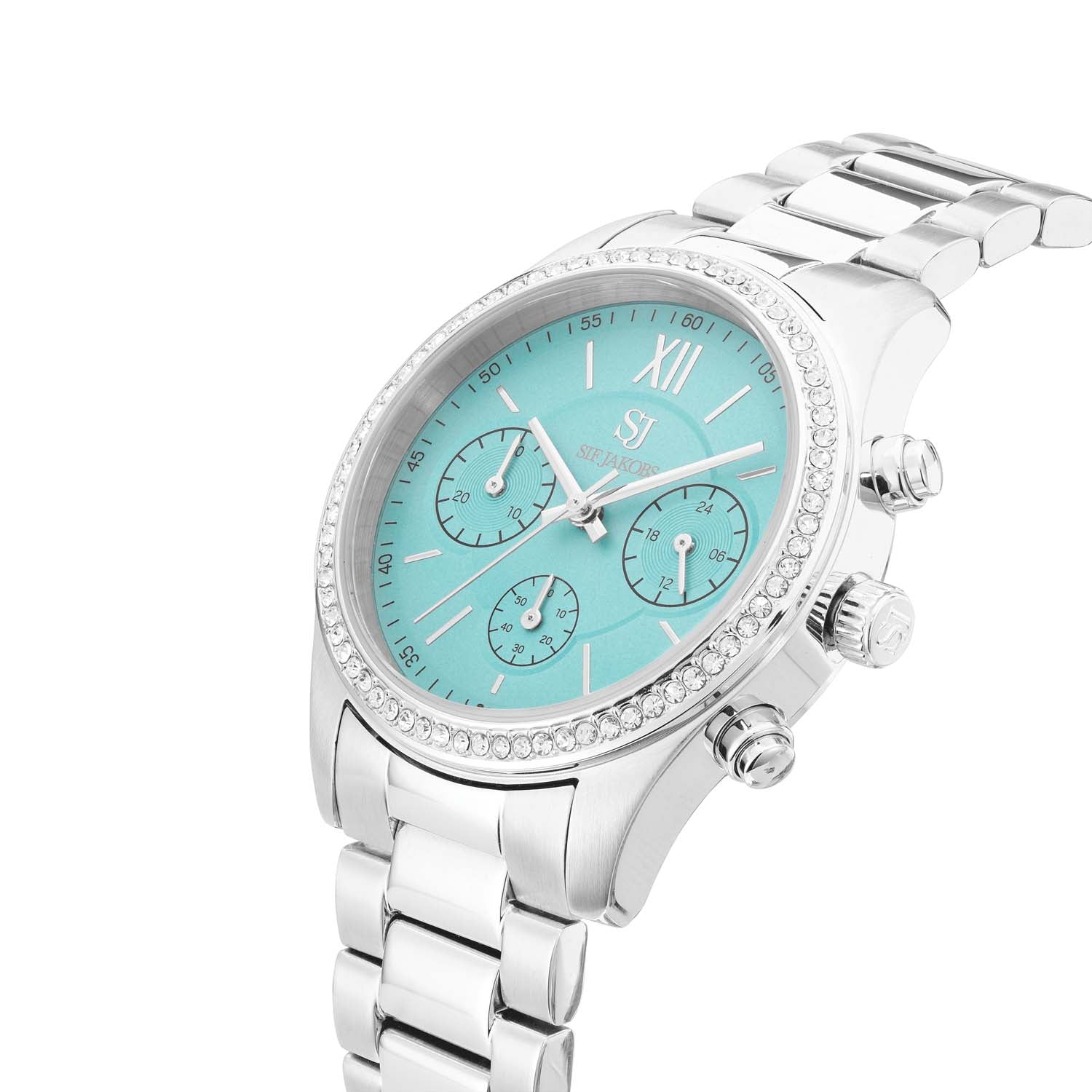 Det turkise urskive tilføjer et friskt pust til det klassiske design. Den skinnende stålrem giver en luksuriøs følelse, mens de subtile detaljer på urskiven skaber en sofistikeret finish. Uret har en diameter på 32,5 mm, hvilket gør det til en perfekt størrelse til både hverdag og festlige lejligheder.