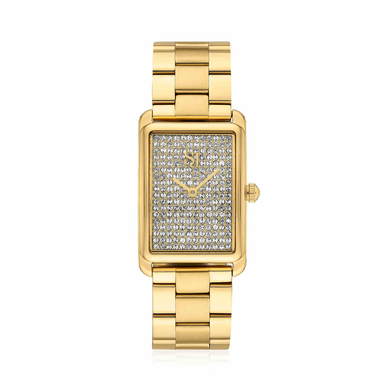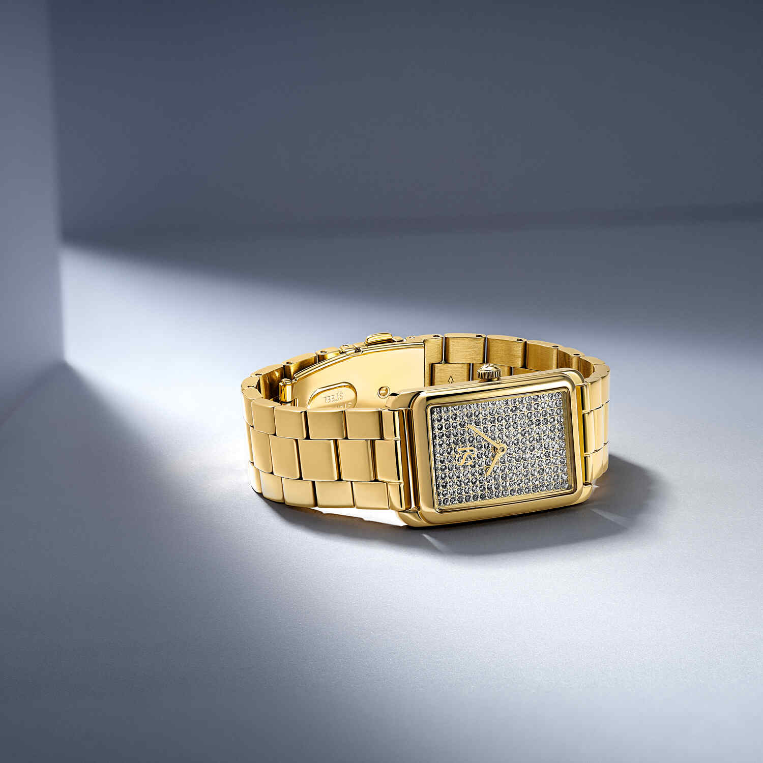 Urets rektangulære urskive er prydet med en overflod af glitrende zirkonia, der fanger lyset fra alle vinkler. Den gyldne lænke i rustfrit stål giver en behagelig og sikker pasform, mens den skinnende overflade tilføjer en luksuriøs følelse. Med sin slanke profil og raffinerede detaljer er dette ur en sand hyldest til moderne elegance.