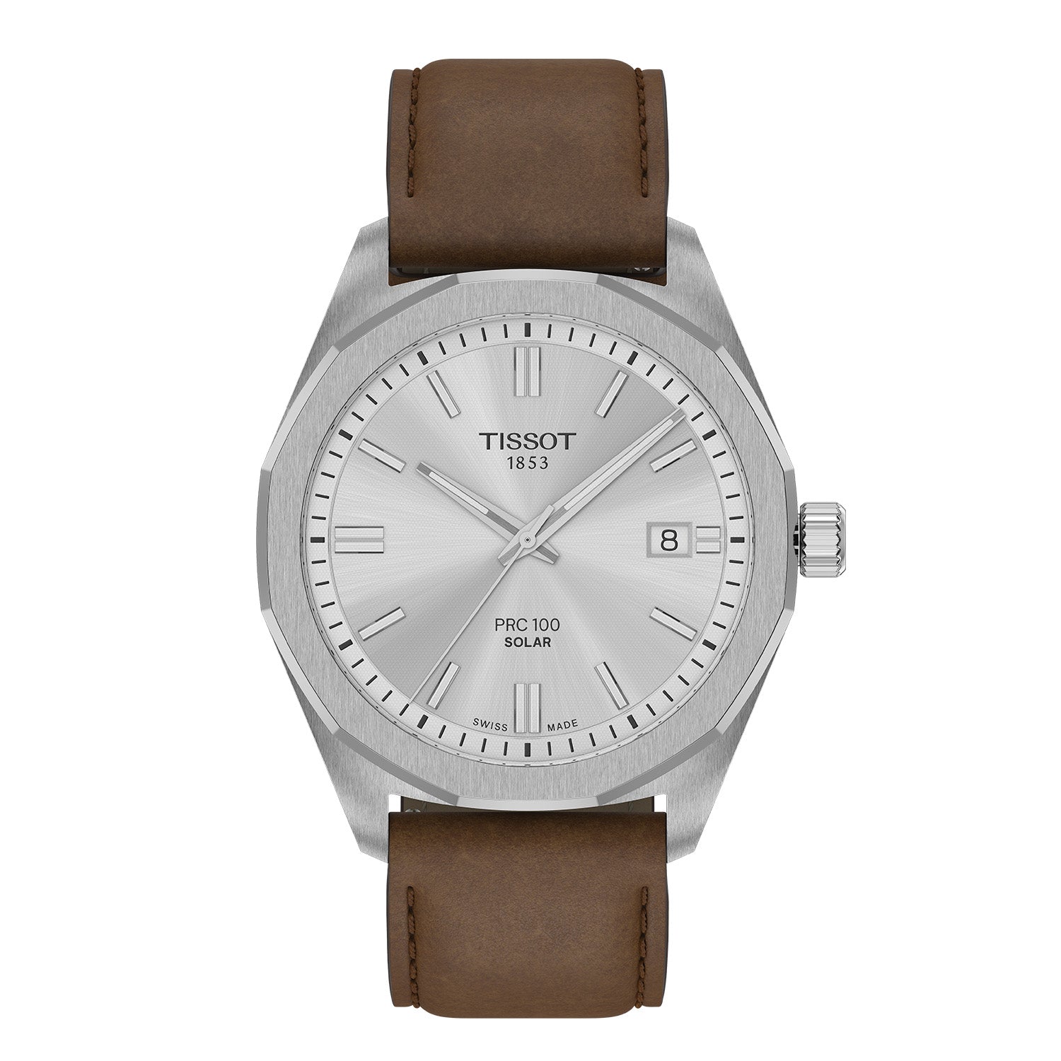 Det robuste safirglas beskytter mod ridser, så uret bevarer sin skønhed over tid. Den brune læderrem føles behagelig mod huden og tilføjer en varm tone til det samlede look. Tissot PRC 100 SOLAR er ikke bare et ur, men en investering i stil og funktionalitet.