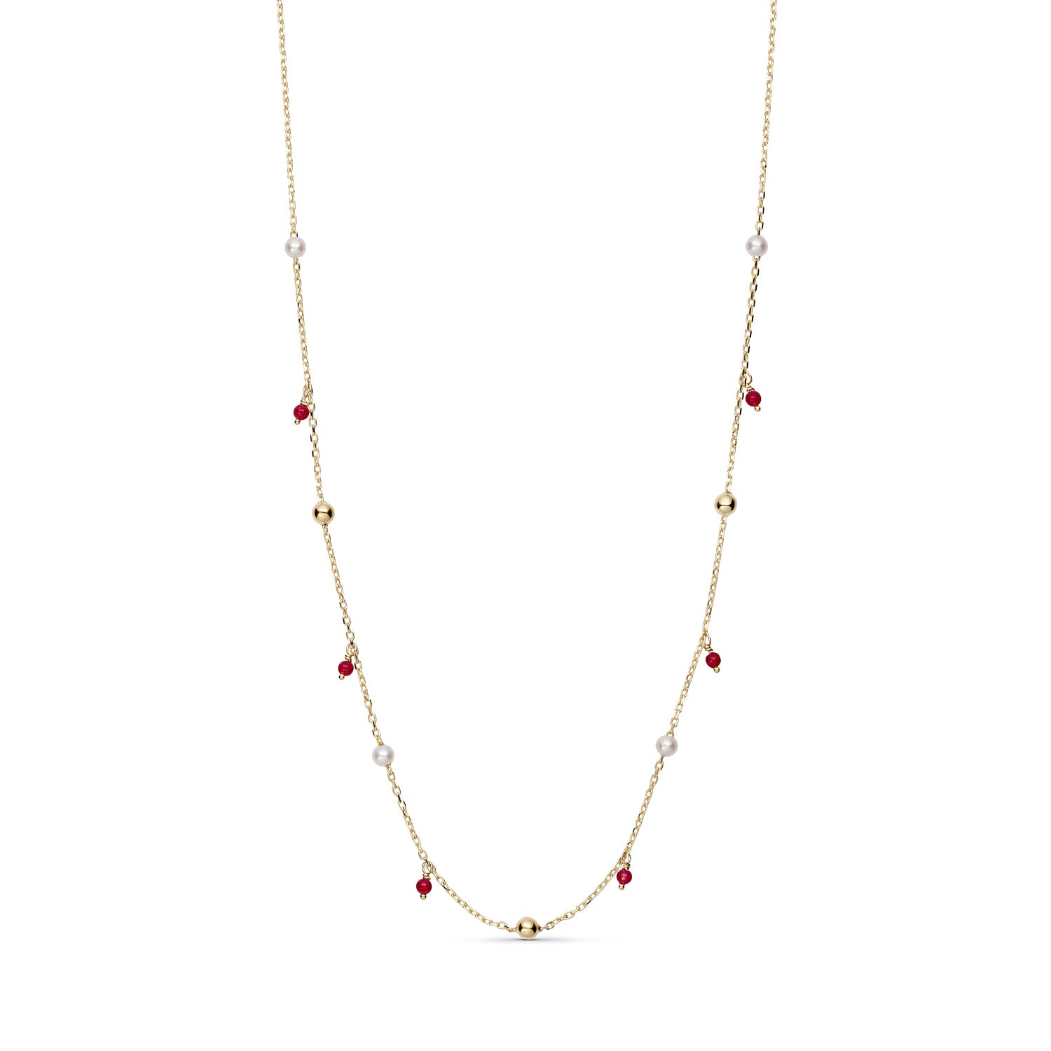 Vibholm GULD - Halskæde m. rubin og ferskvandsperler, 42-45 cm - 8 kt. guld