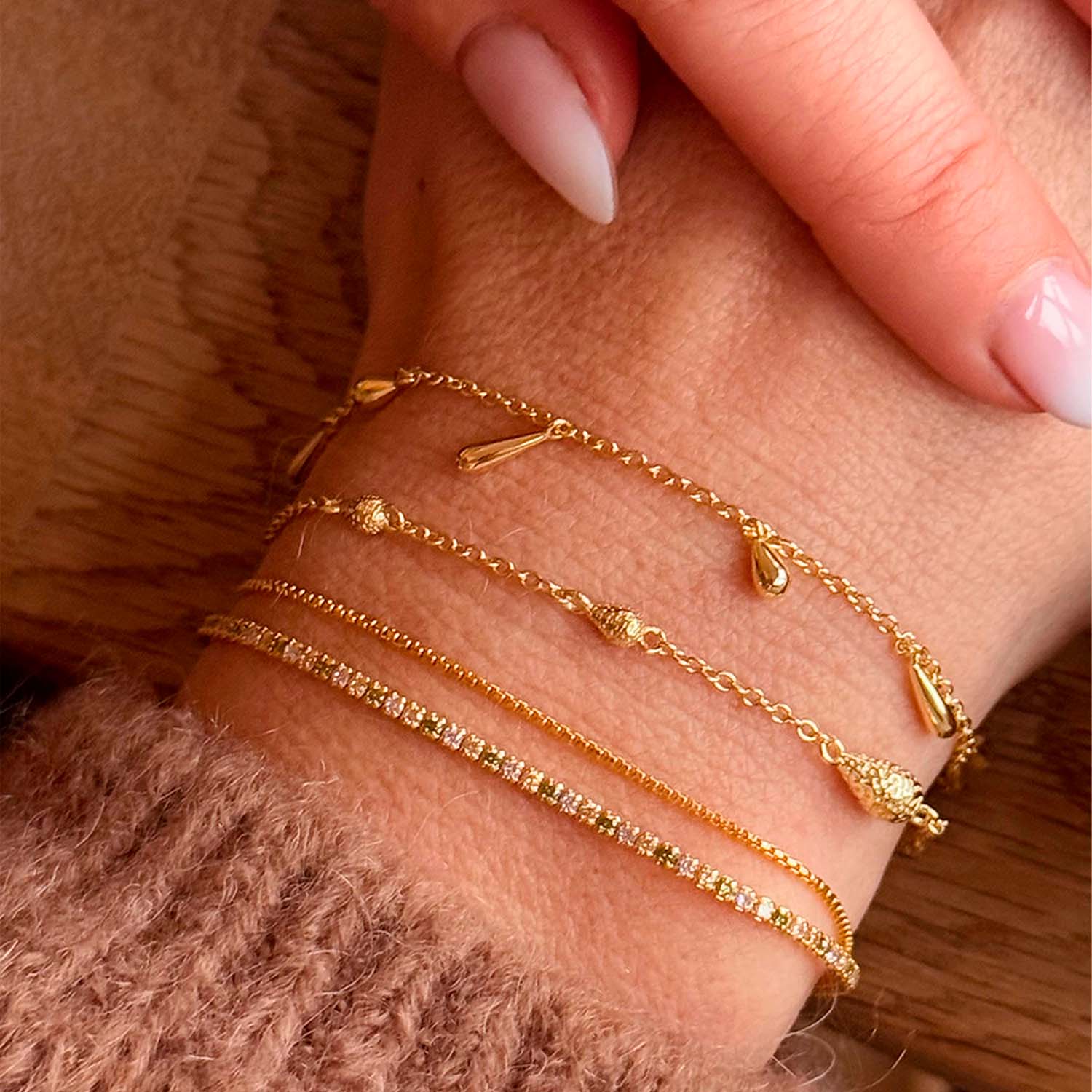 Aqua Dulce - Shiny Drop armbånd, 17+3 cm - Forgyldt sølv