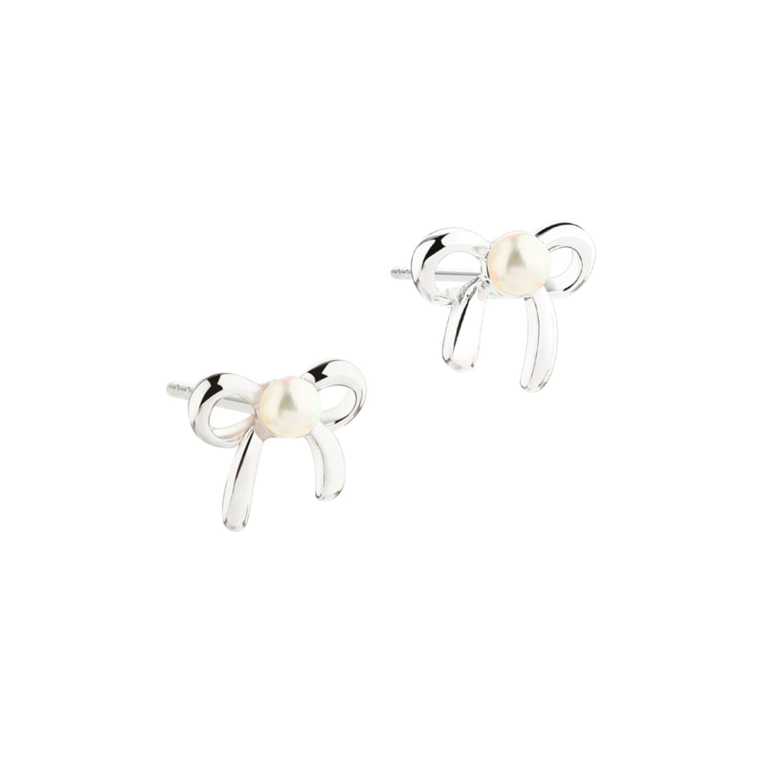 Aqua Dulce - Simple Bow Pearl ørestikker, 10 mm - Sølv