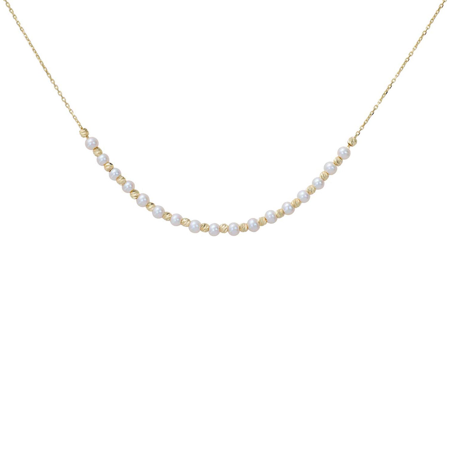 Aveny COLLECTION - Collier m. ferskvandsperler og guldkugler, 42-45 cm - 8 kt. guld