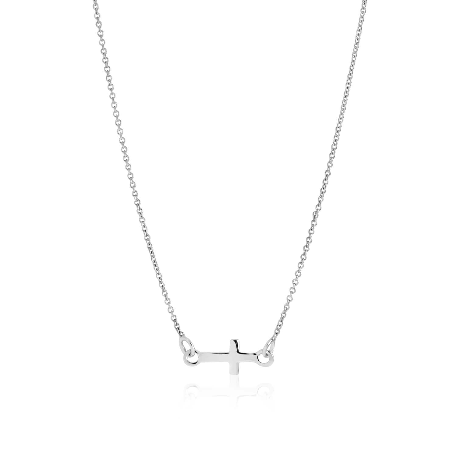 Aveny COLLECTION - Collier m. lille stavkors, 42 cm. - Sølv