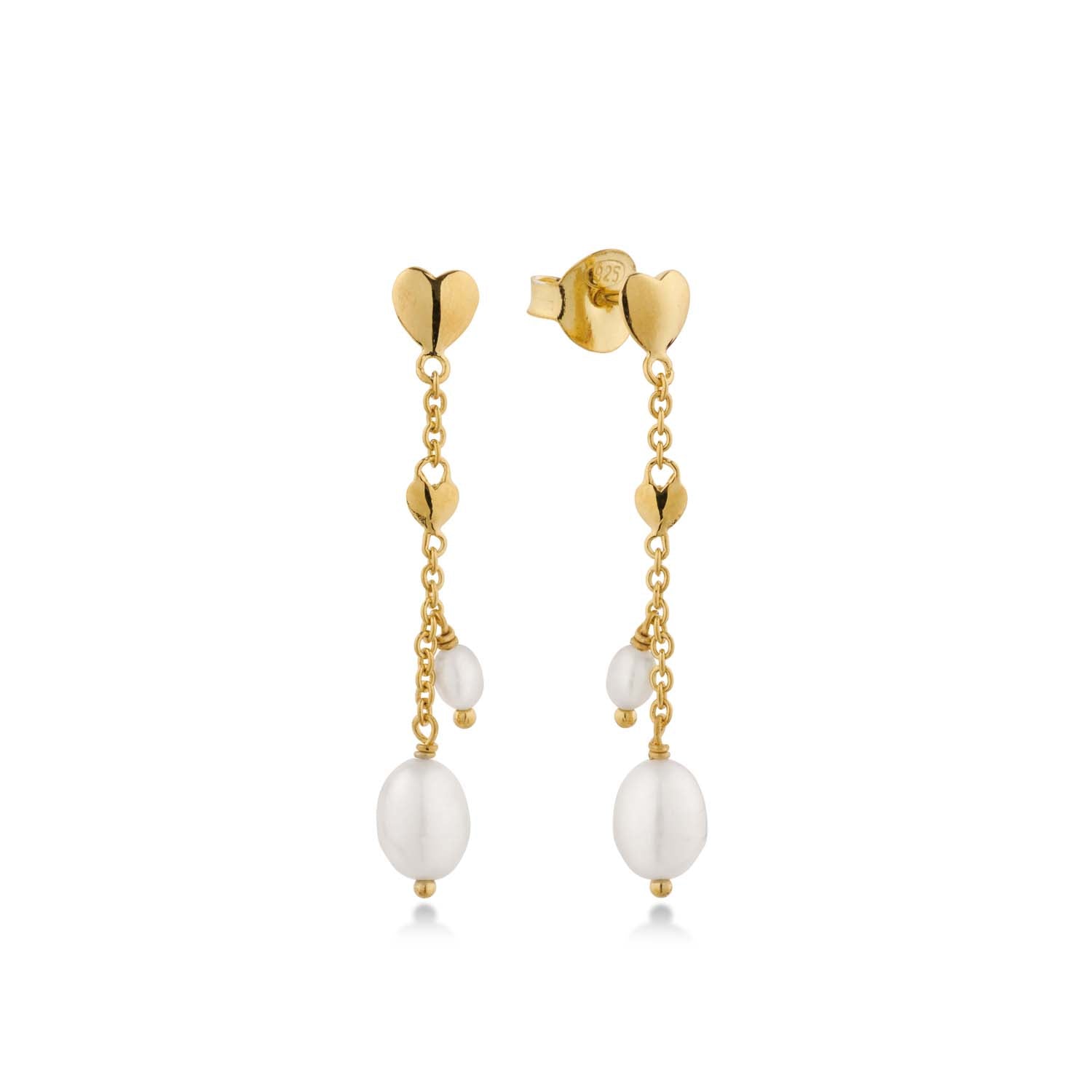 Aveny COLLECTION - Ørehænger m. hjerte, ferskvandsperler - Forgyldt sølv