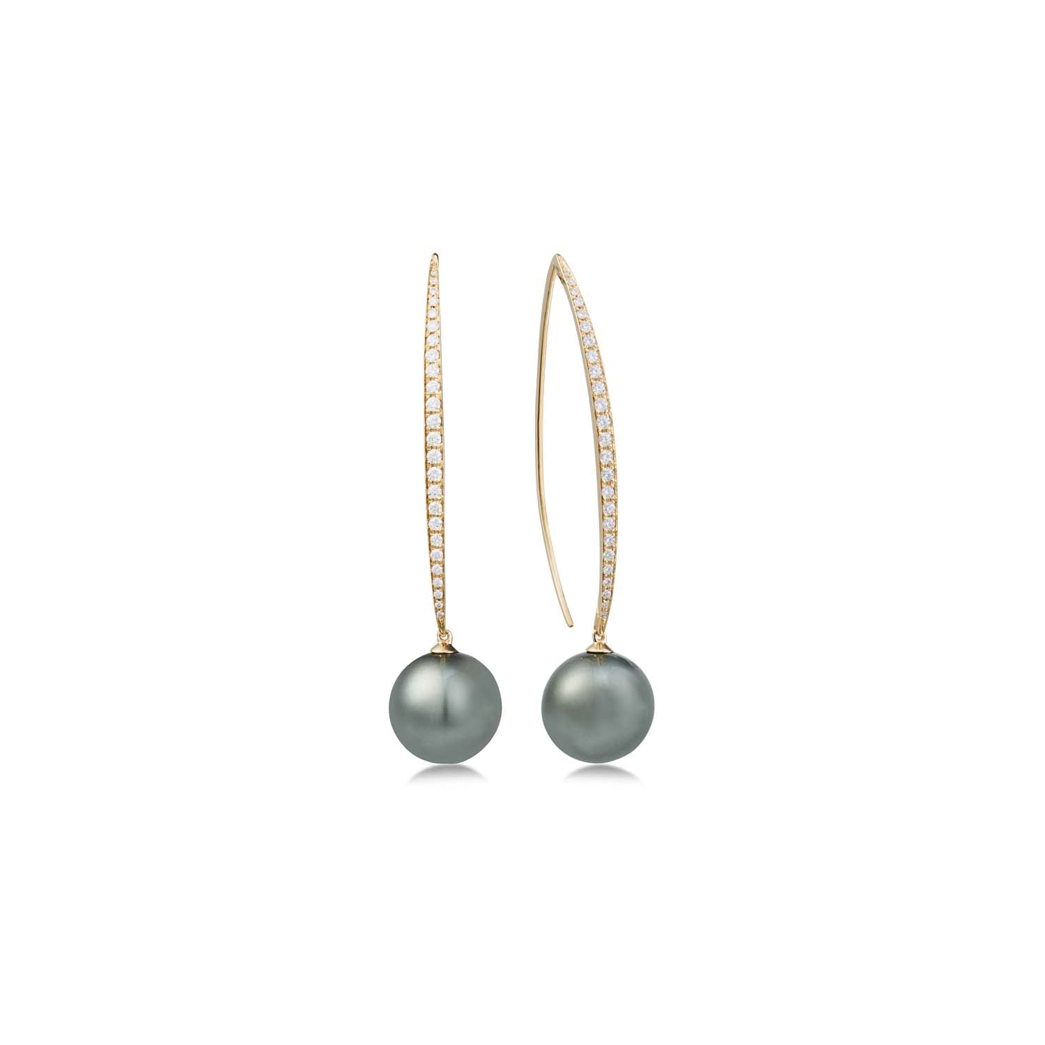 Aveny COLLECTION - Ørehænger m. tahiti, 13 mm/0,54 ct. w/si - 14 kt. guld