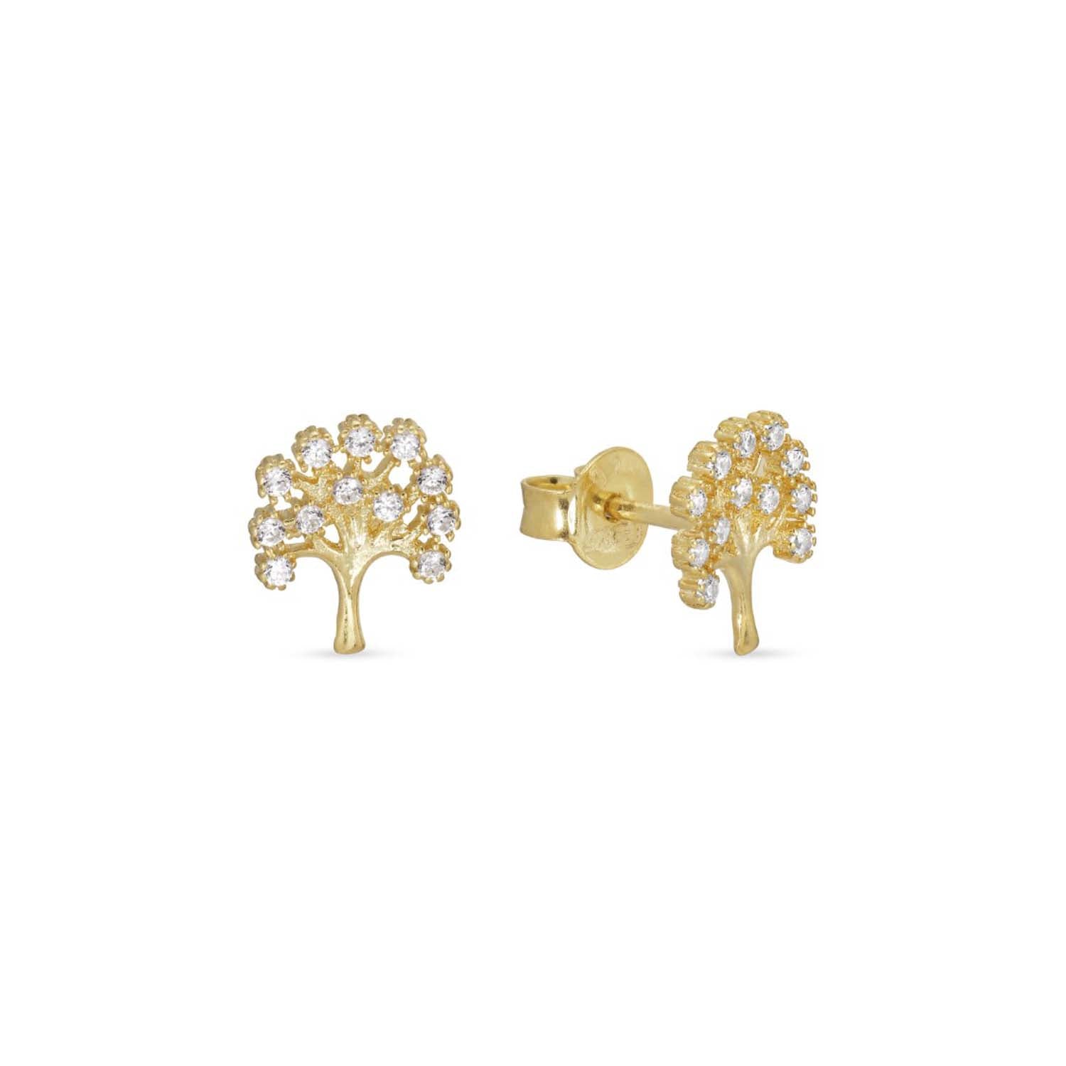 Aveny COLLECTION - Ørestikker m. livets træ, zirkonia - Forgyldt sølv