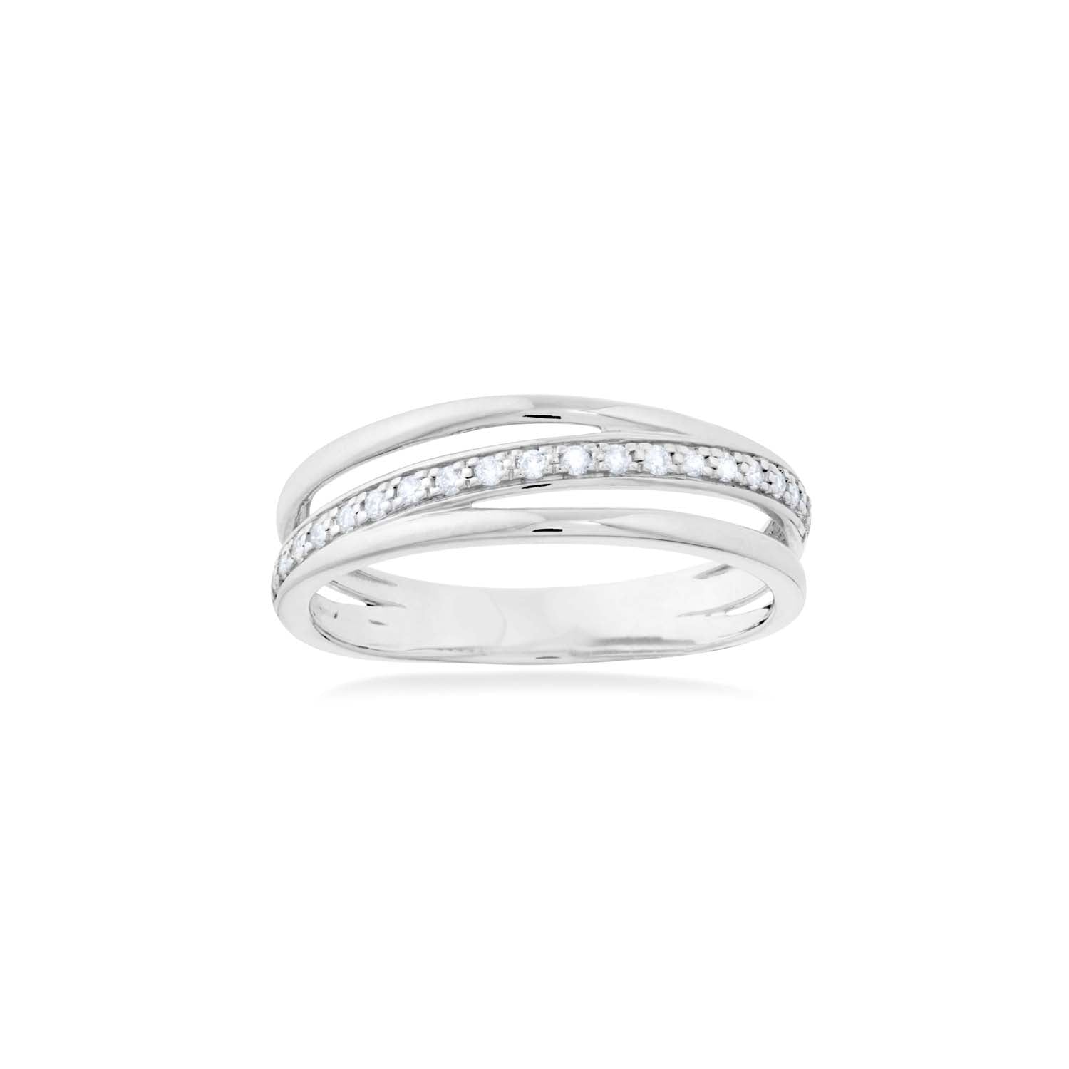 Aveny LUXURY - Ring m. skråt bånd, 0,12 ct. w/si - 14 kt. hvidguld