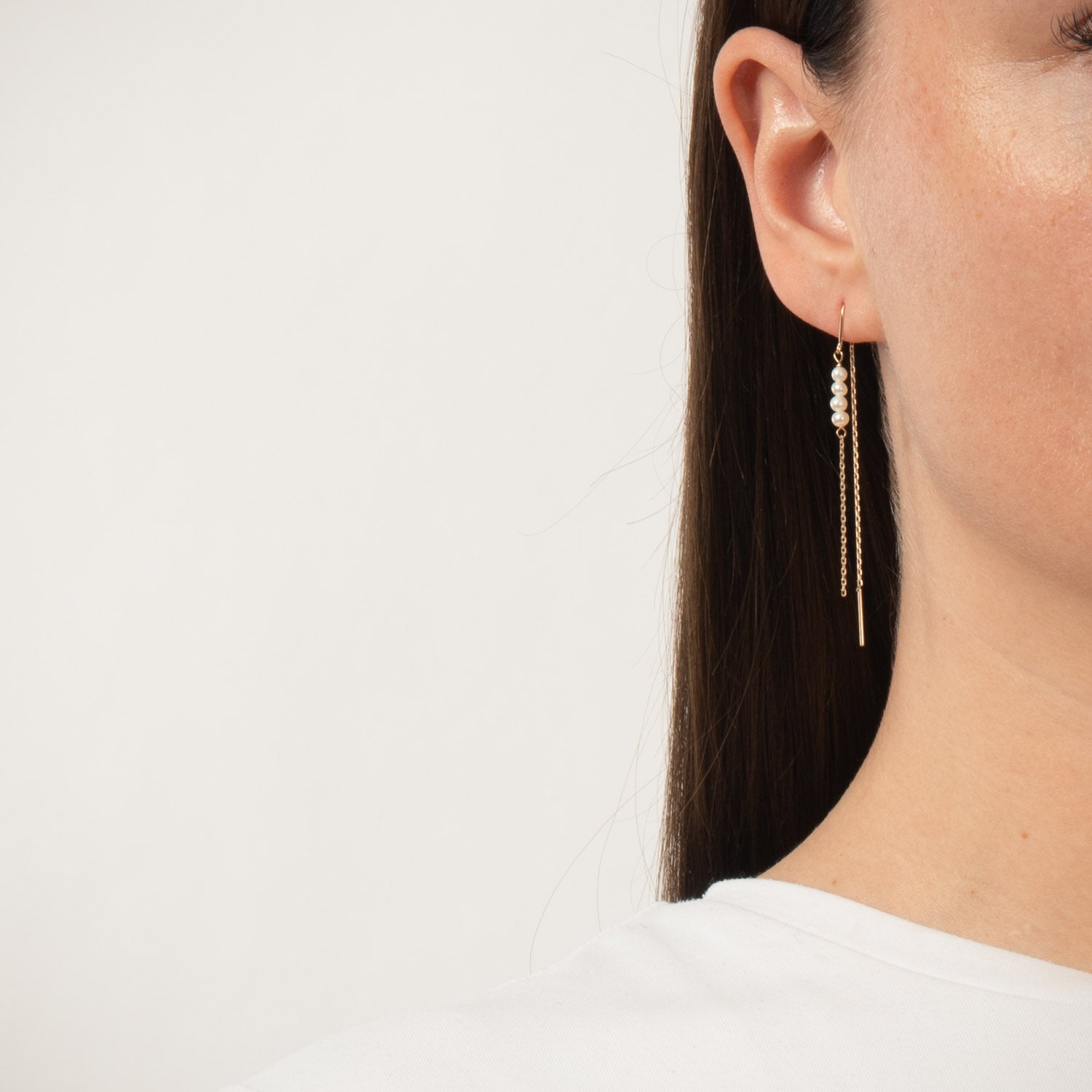 Aveny NINE K - Ørekæder m. fire ferskvandsperle - 9 kt. guld