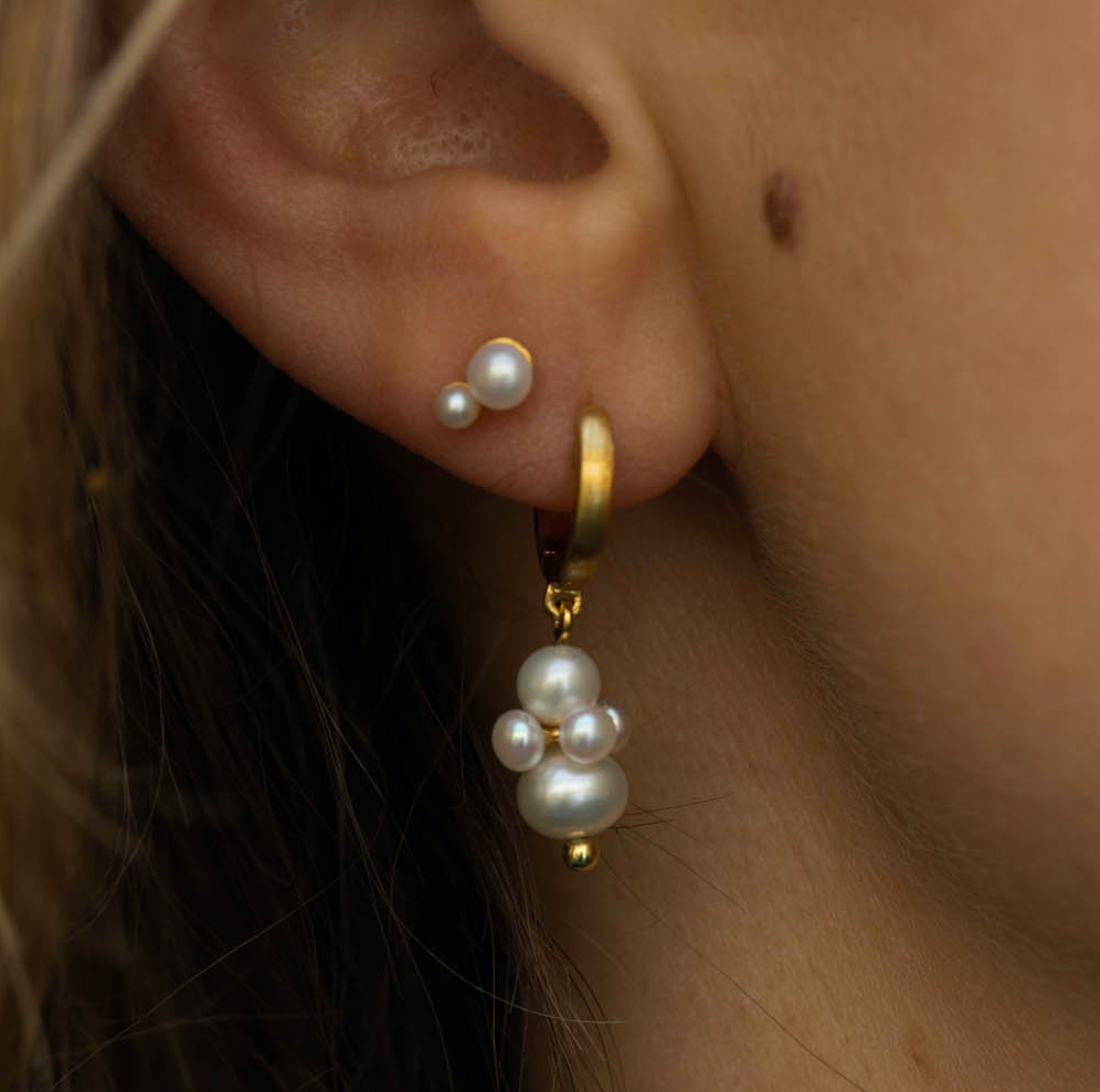byBiehl - Pearl Cluster creoler - Forgyldt sølv