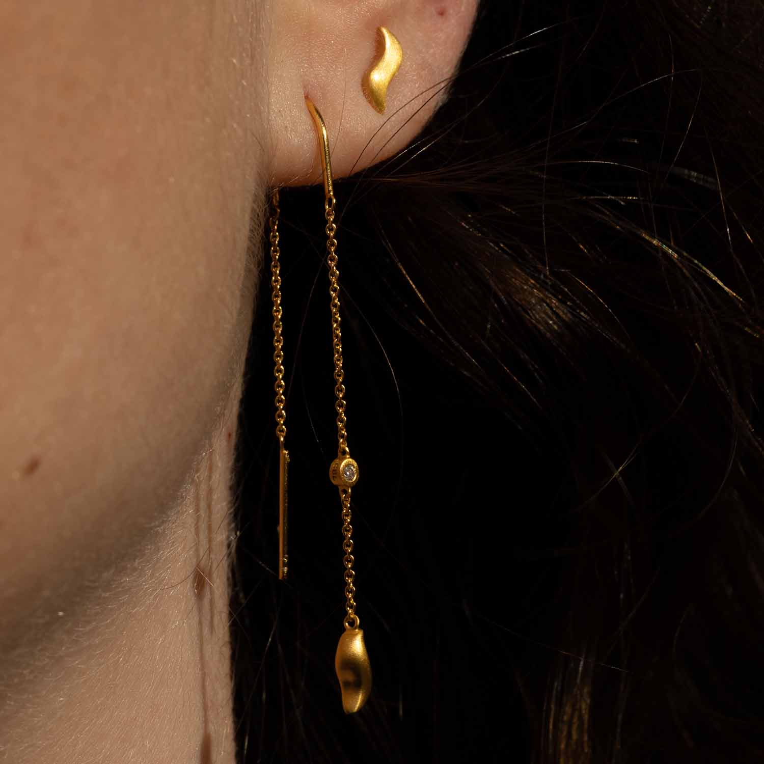 byBiehl - Wave Dangling ørehængere - Forgyldt sølv